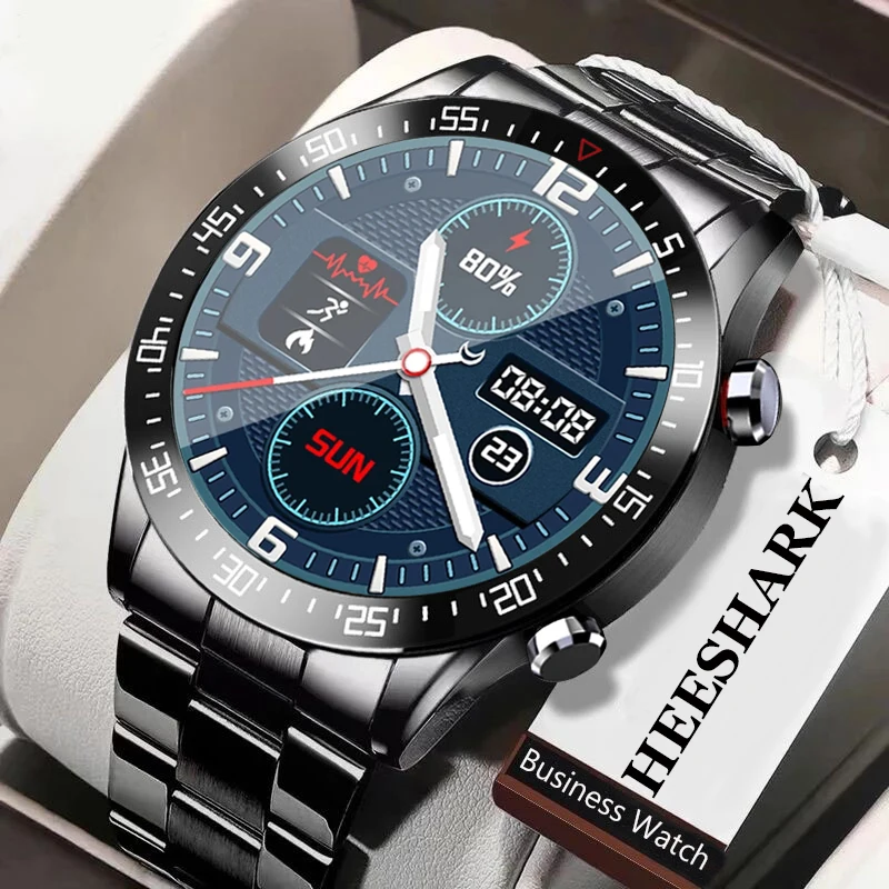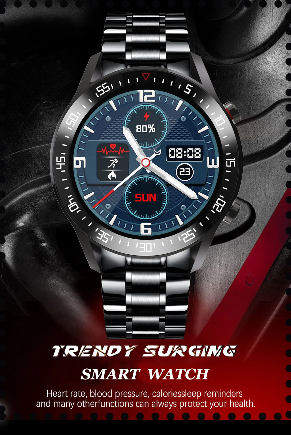 Смарт-часы мужские, водонепроницаемые, со стальным ремешком, пульсометром, тонометром