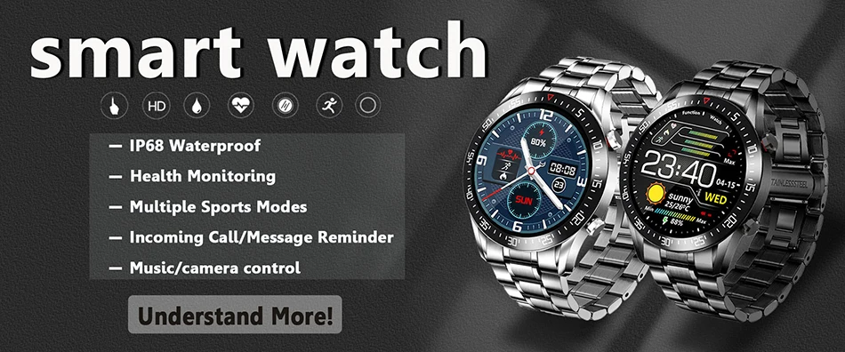 [Многофункциональные часы]-Мужские умные часы имеют полноэкранный цветной сенсорный экран IPS HD, черный металлический циферблат, ремешок из нержавеющей стали, стильный внешний вид и удобство в носке. 6 тем циферблата можно переключать по желанию, настраиваемая тема часов. Часы поддерживают входящие звонки, SMS, уведомления о сообщениях через приложение, удаленную камеру, напоминание о сидячем положении, будильник, секундомер, таймер, Поиск телефона, регулировку яркости, режим «Не беспокоить» и другие функции для удовлетворения ваших ежедневных потребностей.
