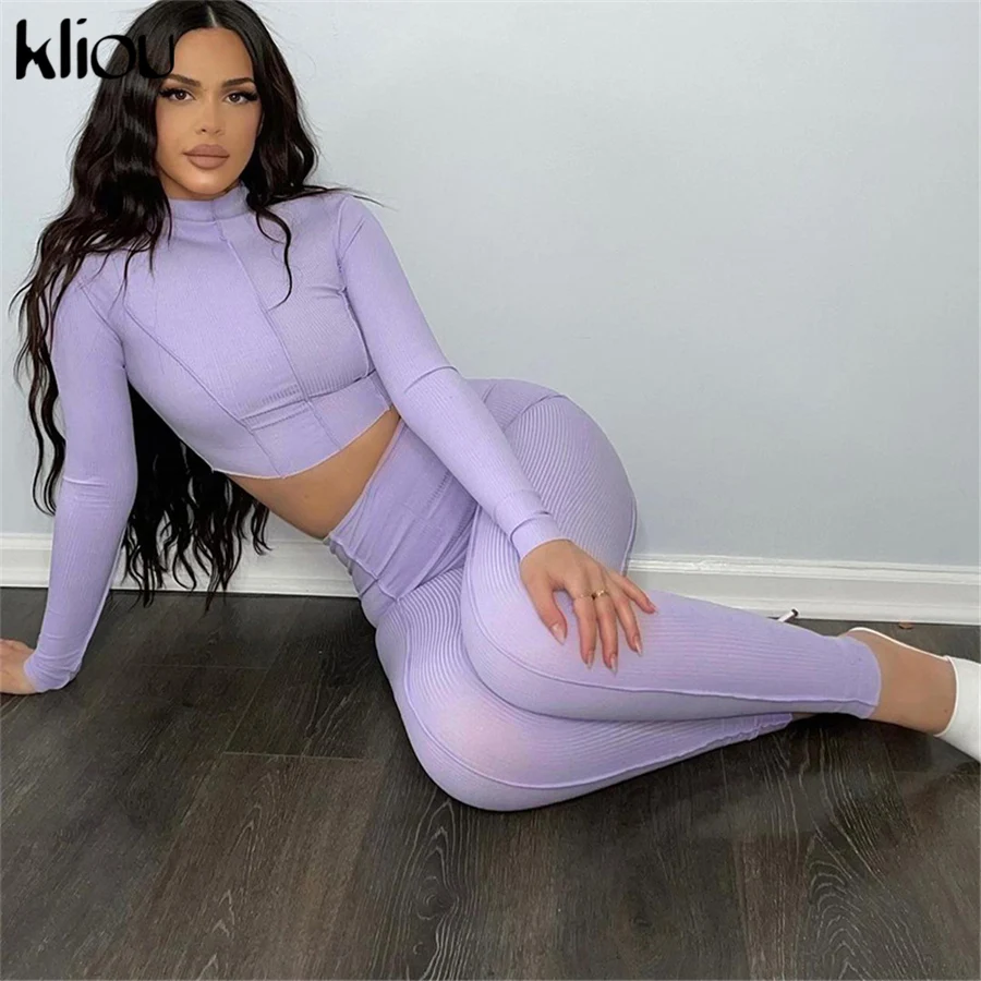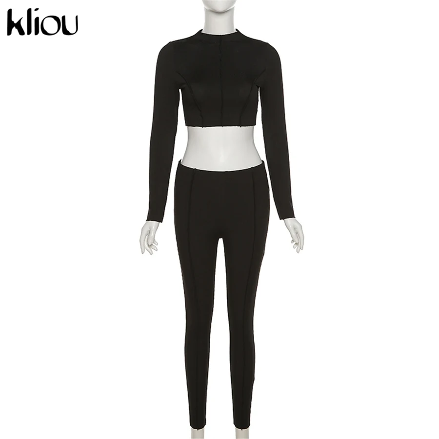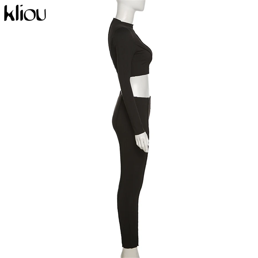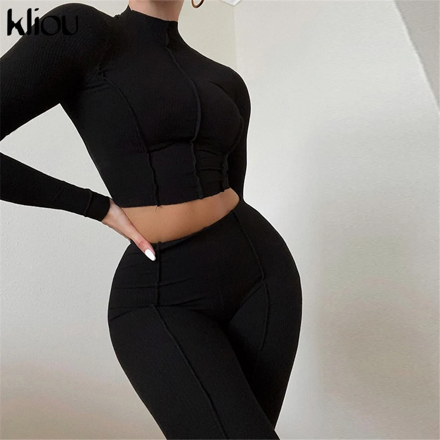 Женский спортивный комплект из двух предметов Kliou, облегающий укороченный топ с высоким воротником, леггинсы, летняя повседневная одежда, спортивная одежда для занятий фитнесом