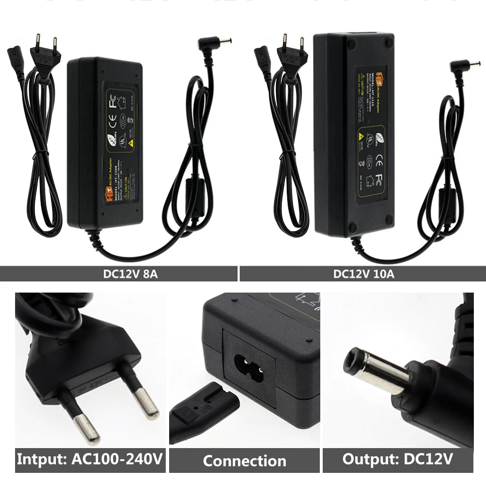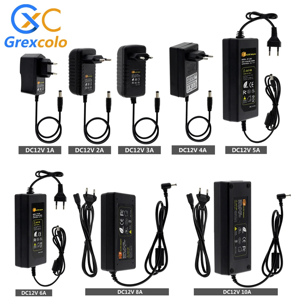 Адаптер 12 В, AC100-240V трансформаторов освещения, выход 12 В, 1 А, 2 А, 3 А, 4 а, 5 А, 6 А, 8 А, 10 А, вилка ЕвропаСША, источник питания 12 В для светодиодной ленты