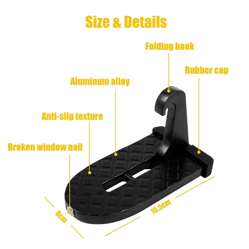 Складывается, небольшого размера, легко крышу автомобиля, используется как предохранительный молоток.