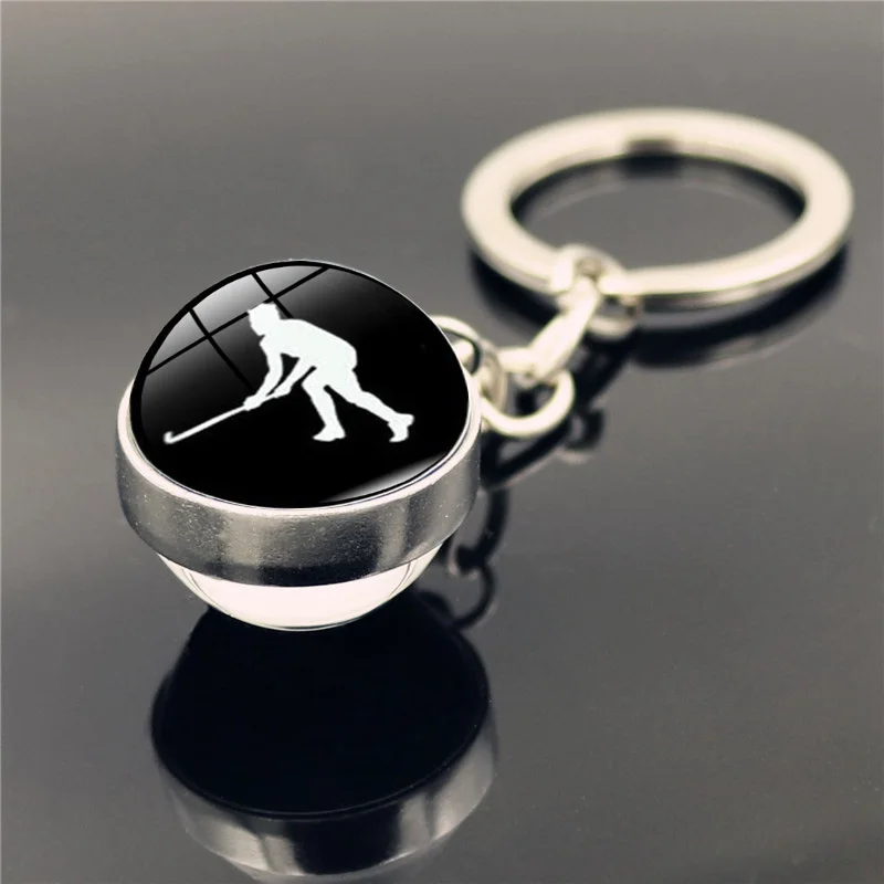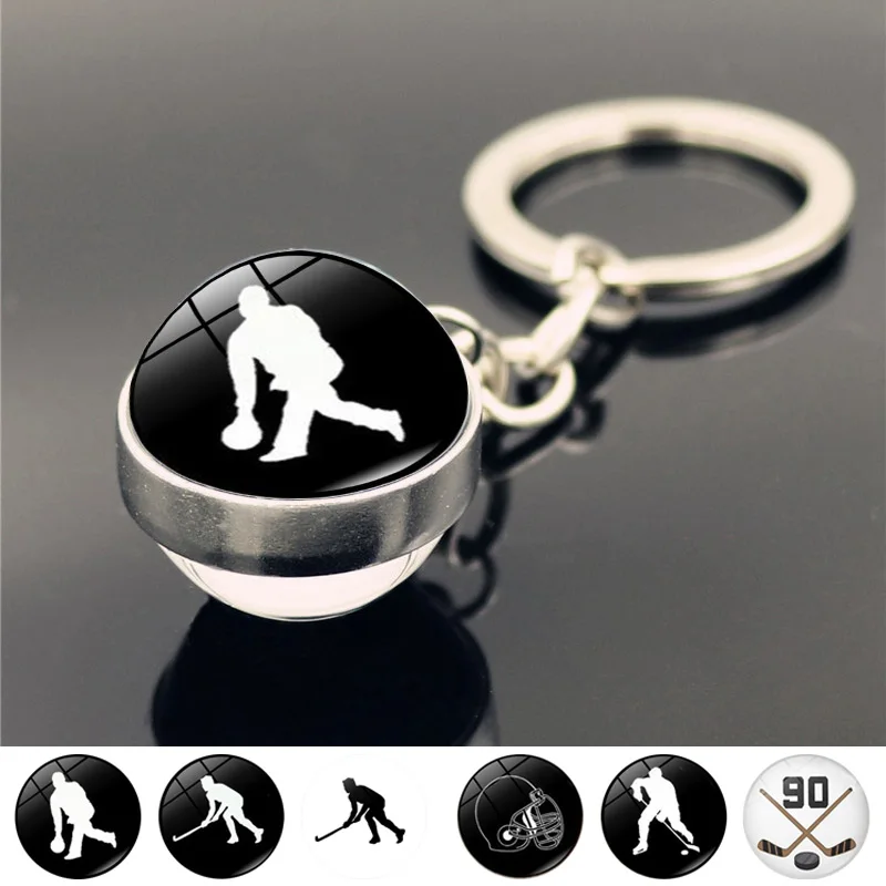 Брелок для ключей для хоккея с шайбой, модный двухсторонний брелок с кулоном в виде стеклянного шара, с профилем игрока