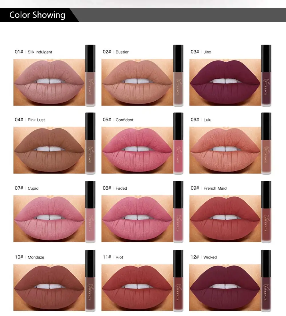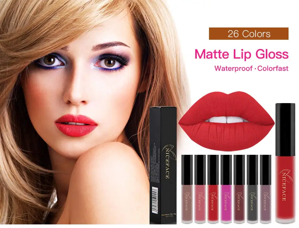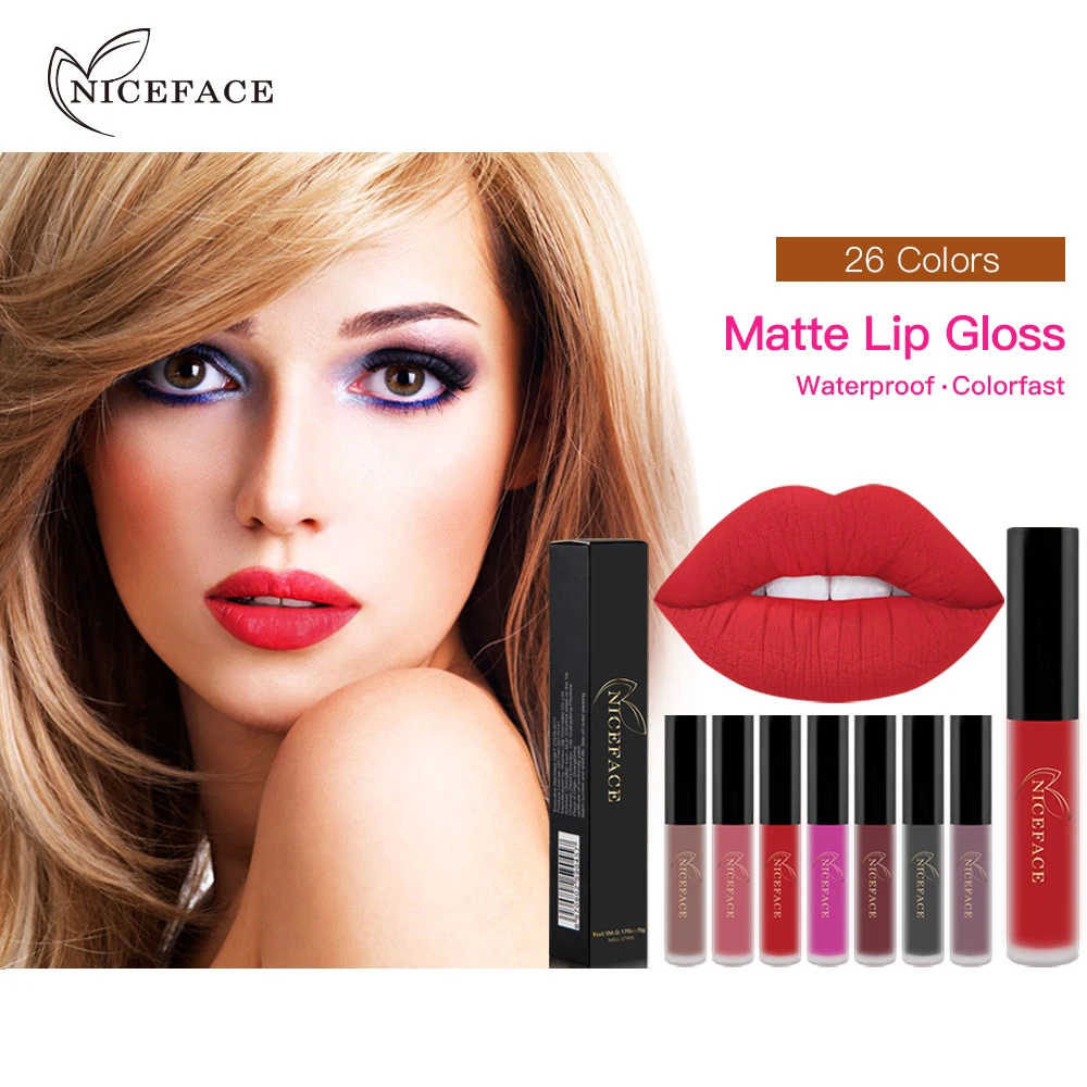 Водостойкая губная помада NICEFACE, стойкая Матовая жидкая губная помада, блеск для губ, косметика для губ, макияж, 26 цветов, инструменты для макияжа