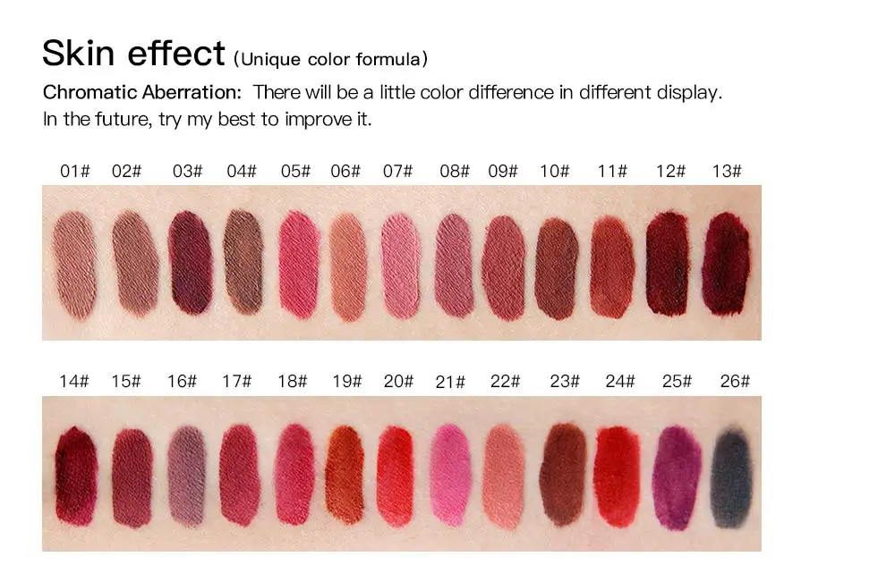 Название продукта: матовый блеск для губСодержание нетто: 20 гХарактеристики продукта: матовая, легко окрашиваемая Очаровательная губка, не легко выцветает чашка и выцветает, полный цветНазвание продукта: Карандаш для губ свободного стиляНетто: 0,8 гХарактеристики изделия: мягкий материал, симметричный и удобный, обтекаемая форма, мягкий и прозрачный, чтобы нарисовать цвет губ и не легко экстравазировать