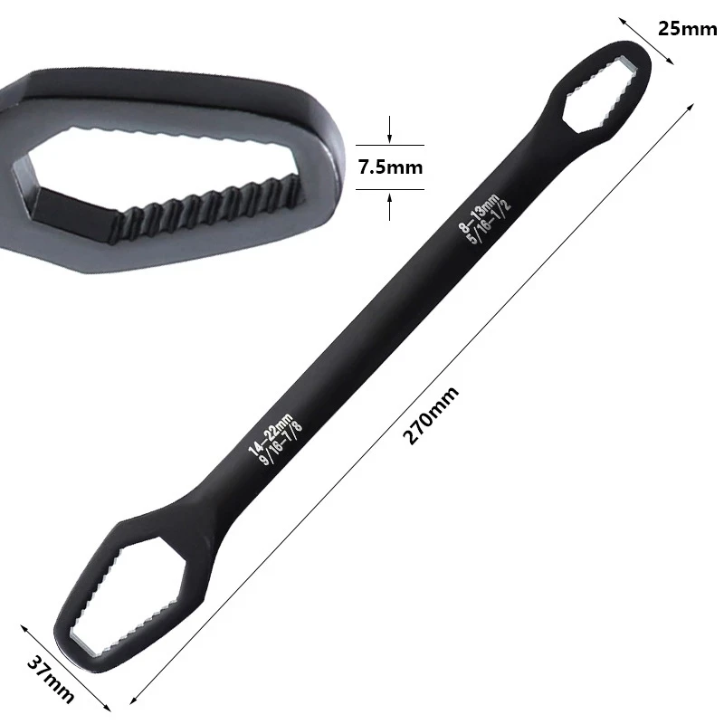 Особенности:1. Многофункциональный универсальный гаечный ключ: самозатягивающийся универсальный гаечный ключ подходит для разборки винтов различных спецификаций.2. Высококачественный материал: гаечный ключ изготовлен из высококачественной CR-V кованой стали с высокой твердостью и повышенной долговечностью. Он может выдерживать использование и работать гораздо больше лет.3. Диапазон двойных торцевых гаечных ключей: хромированная полировка, стандартная 5/16-7/8 дюймов и метрические 8-22 мм гайки и болты.4. Универсальный дизайн гаечного ключа: уникальный ультра-длинный дизайн может увеличить крутящий момент, лучше использовать Принцип рычага, более трудоемкий.5. Широкое применение: Этот универсальный ключ идеально подходит для ремонта дома, строительства, столярных работ, автомобилей, велосипедов, мотоциклов и домашнего обслуживания.Примечание:Фактические цвета могут отличаться от цвета изображения из-за настроек компьютера.Возможны незначительные отклонения из-за ручного измерения.