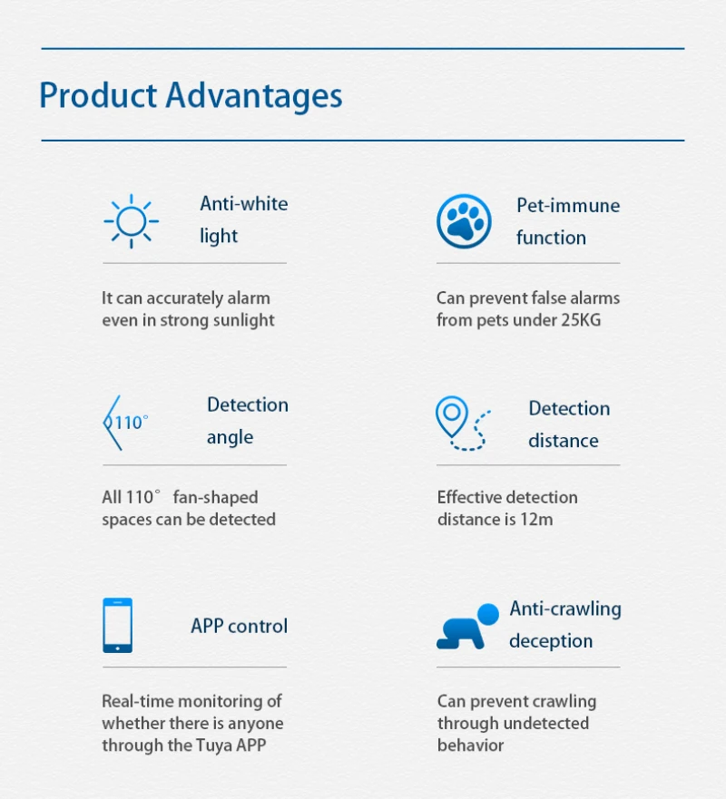 Ультра-широкое обнаружение с первого взгляда эффективное Обнаружение 110 ° широкий угол, может быть обнаружено в 12 метрах пространства спереди
