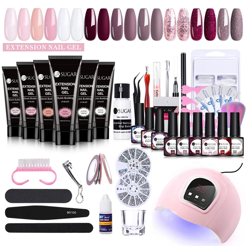 UR SUGAR расширение гель для ногтей комплект с лампа для ногтей Блестящий Гель-лак для ногтей комплект все для маникюрного набора стартера акриловый Фрезер для ногтей cо шлифовальными салон Комплект