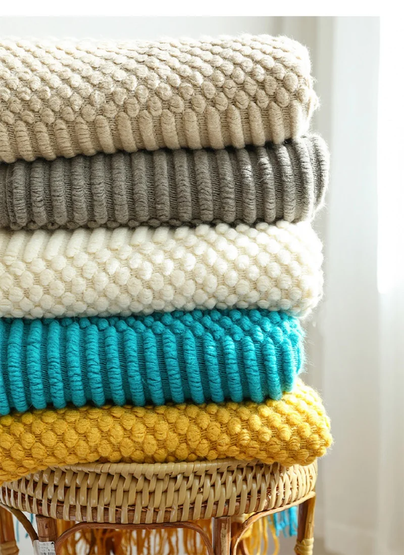 Nordic вязаный Одеяло на кровати с кисточками однотонные Цвет Путешествия Диван с начесом кондиционер мягкий Одеяло для офиса, для сиесты шаль Одеяло