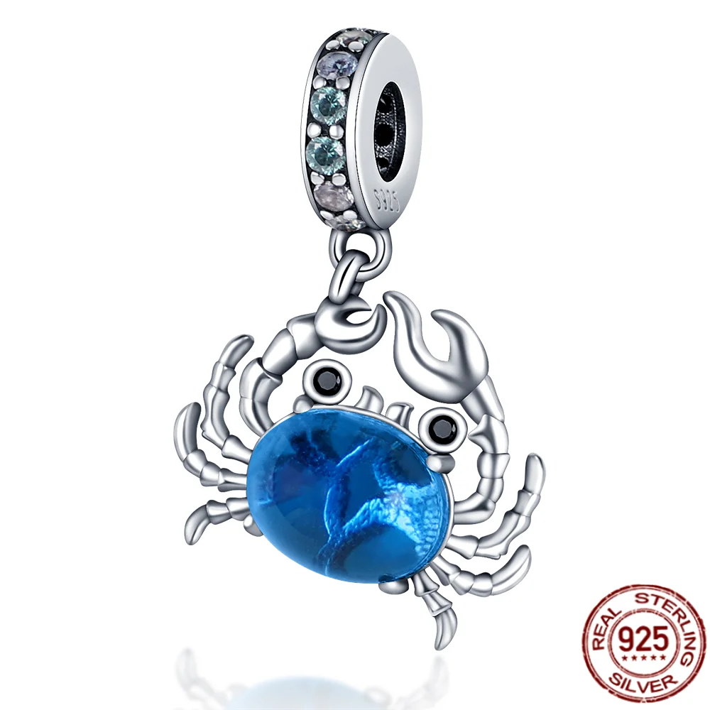 Подвеска-краб из серебра 925 пробы с синим цирконием подходит для б...