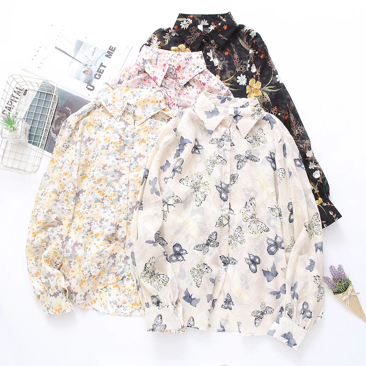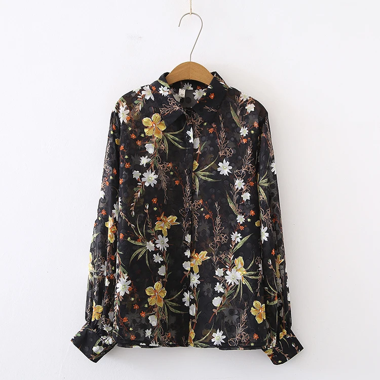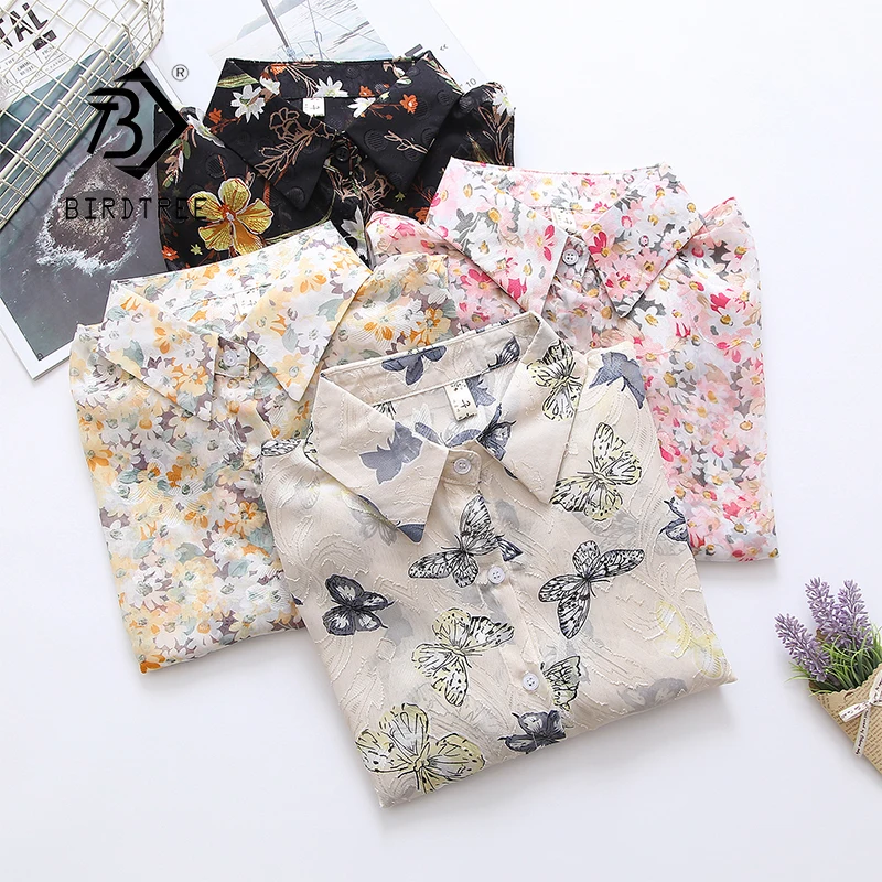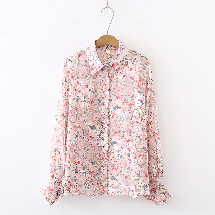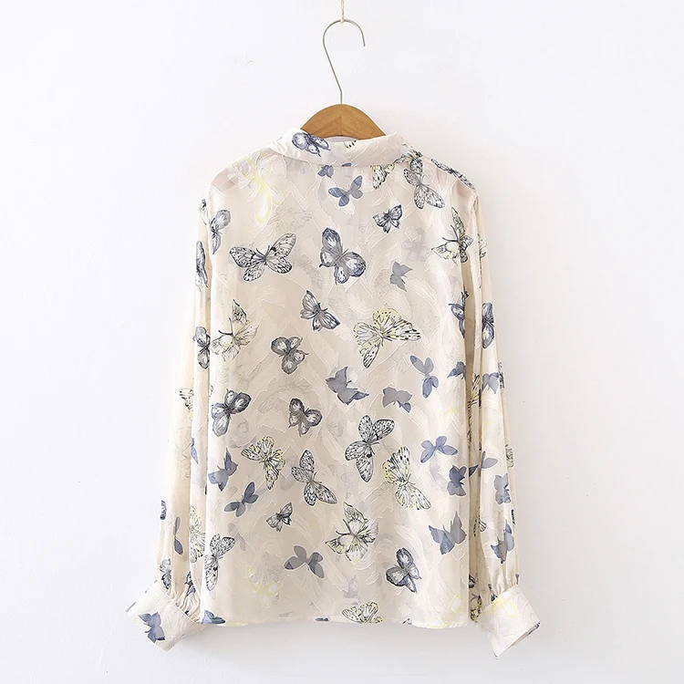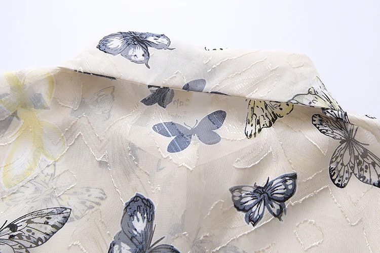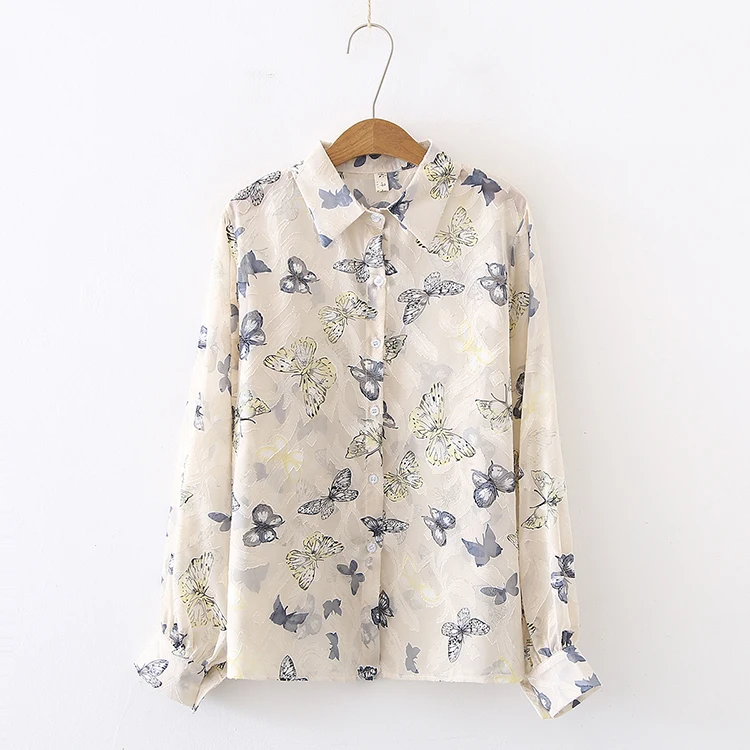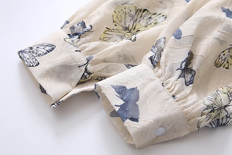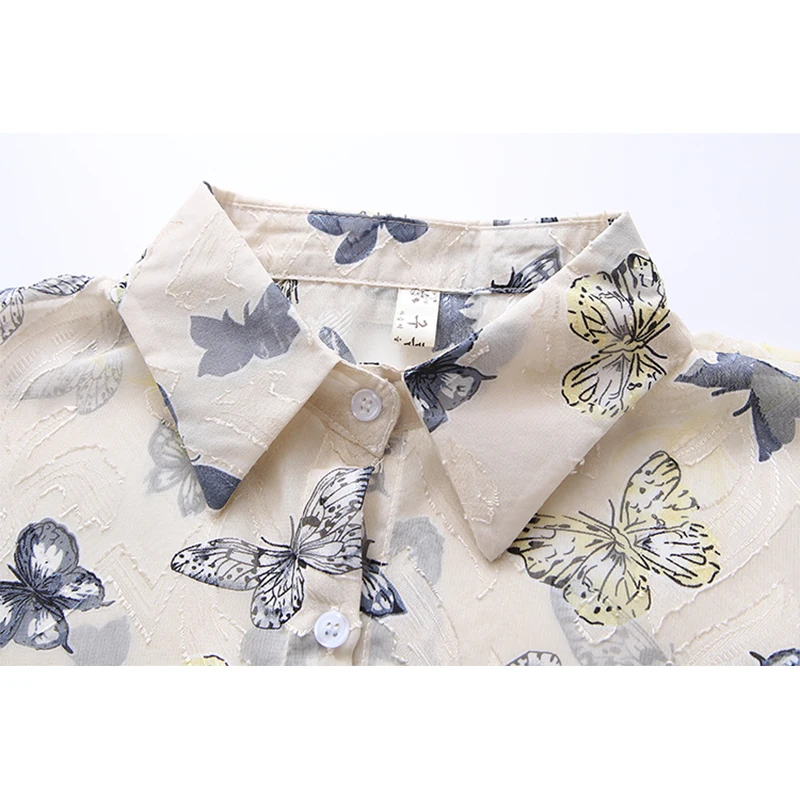 Лето 2021, Новое поступление, женская шифоновая блуза с цветочной вышивкой и бабочками, рукав-фонарик, на пуговицах, прозрачная рубашка, повседневные солнцезащитные Топы T15813F