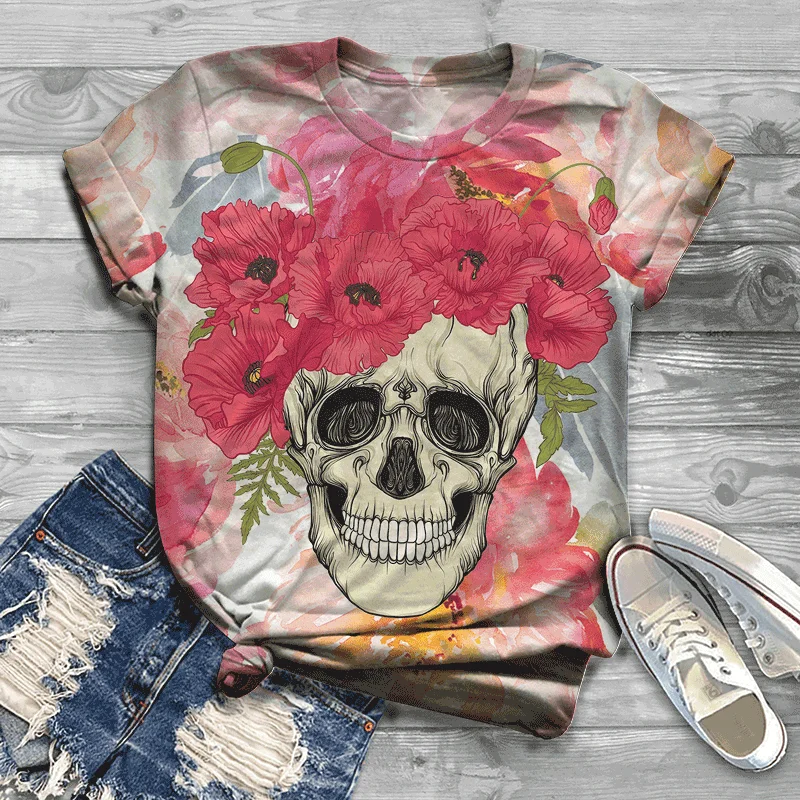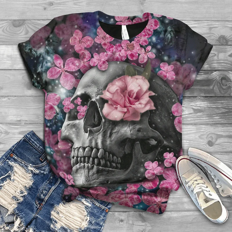 20213D шлепанцы с принтом в виде черепов; Летние модные повседневные туфли в стиле Харадзюку Футболка женская Сити большой Размеры коротким рукавом, с О-образным вырезом, все-матч женская обувь