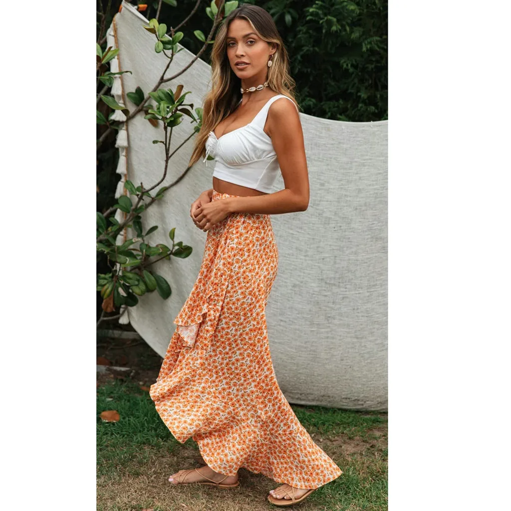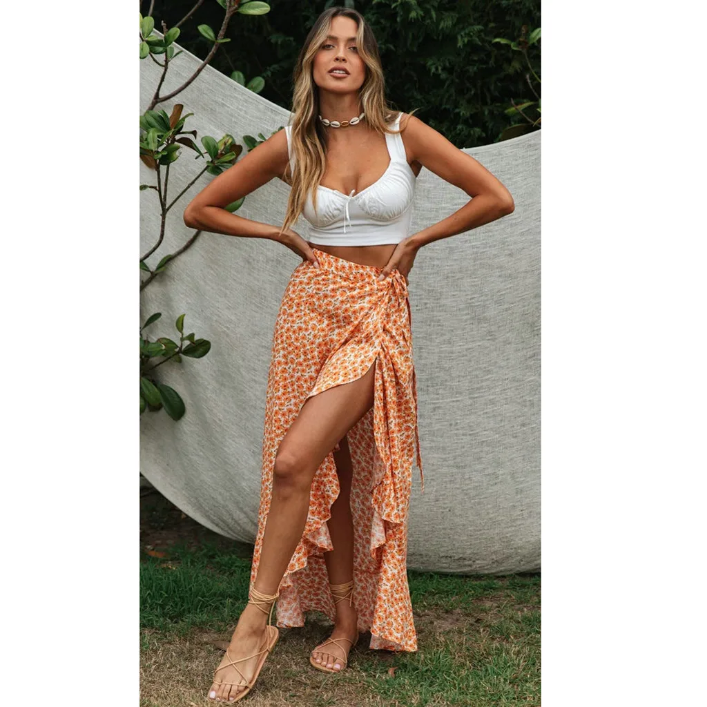 Женская маленькая юбка с цветочным принтом, богемная модная классическая юбка с высокой талией и разрезом для пляжного отдыха, очень мягкая и гладкая одежда
