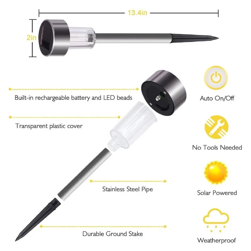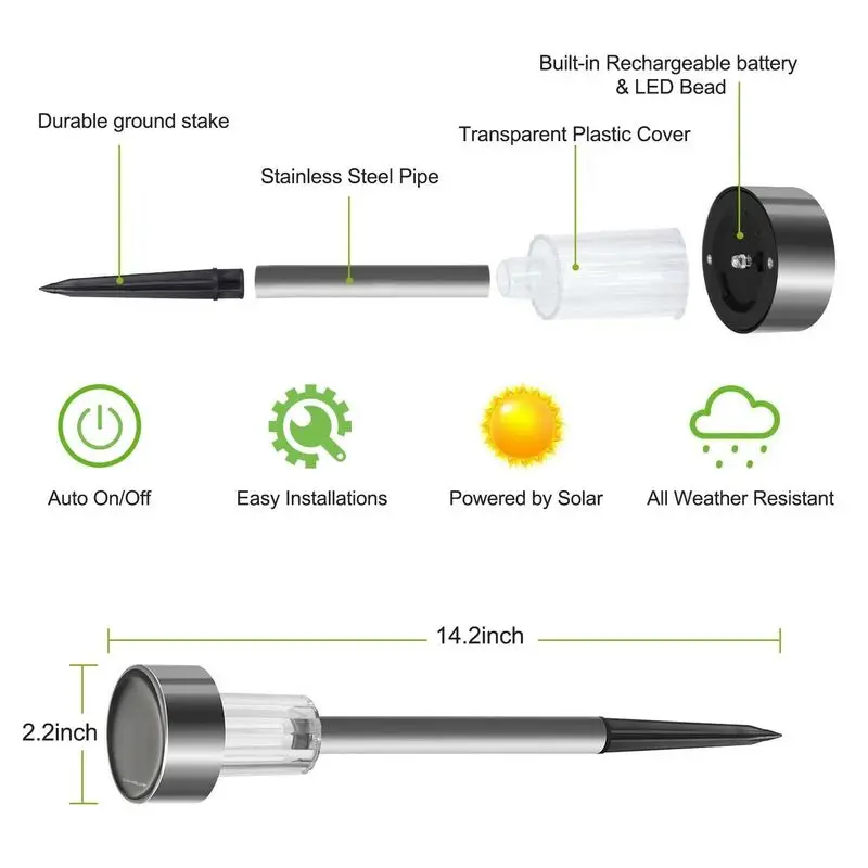 Светодиодный светильник на солнечной батарее, ландшафсветильник водонепроницаемая лампа из нержавеющей стали для сада, внутреннего двора, декоративная лампа для дорожек