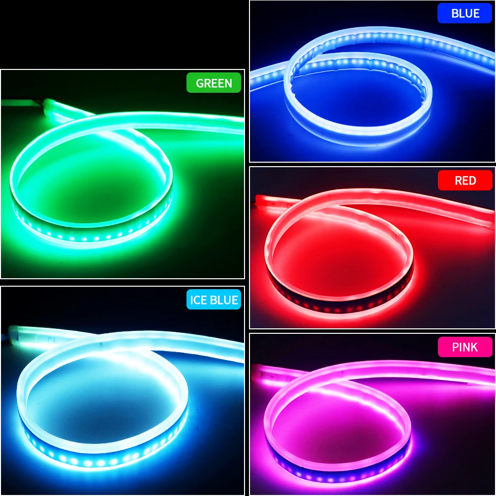 2 шт. LED DRL Автомобильные фары дневного света светильник светодиодный гибкий Водонепроницаемый полосы Авто головного средства ухода за кожей Шеи светильник s указатель поворота декоративные светильники RGB приложение Управление 12V