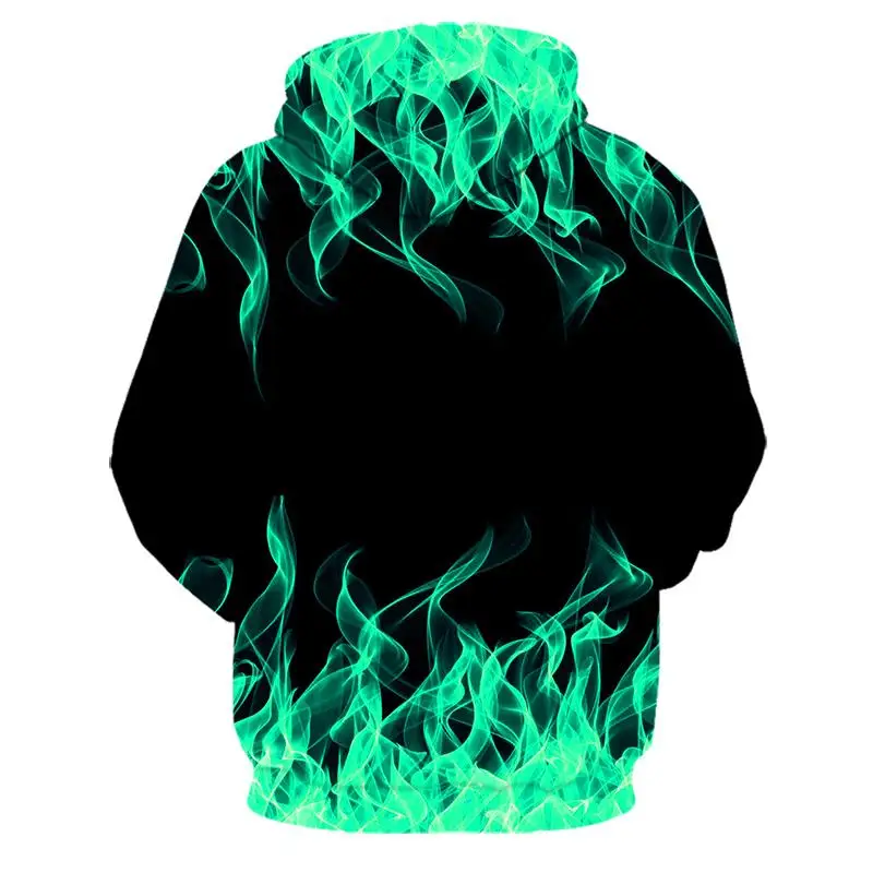 Мужская толстовка с капюшоном и принтом зеленого пламени, худи с 3D...