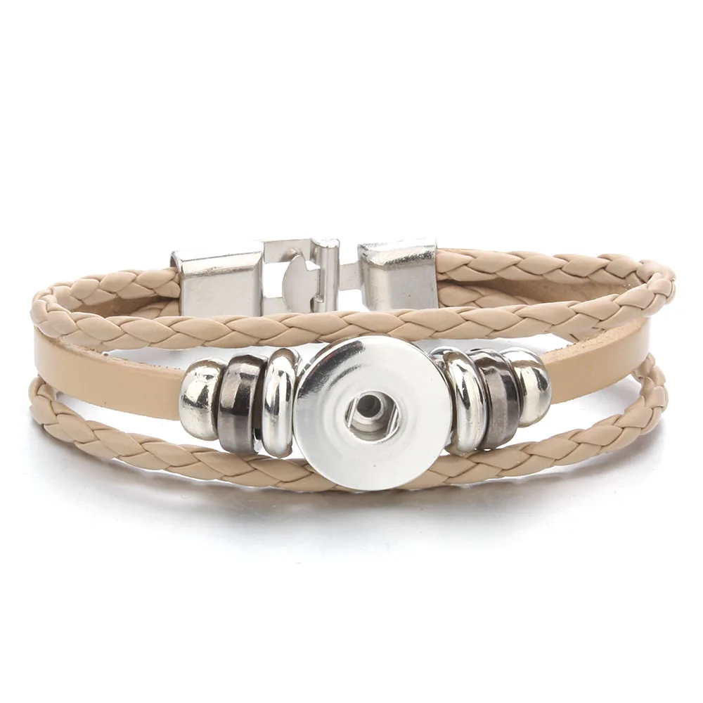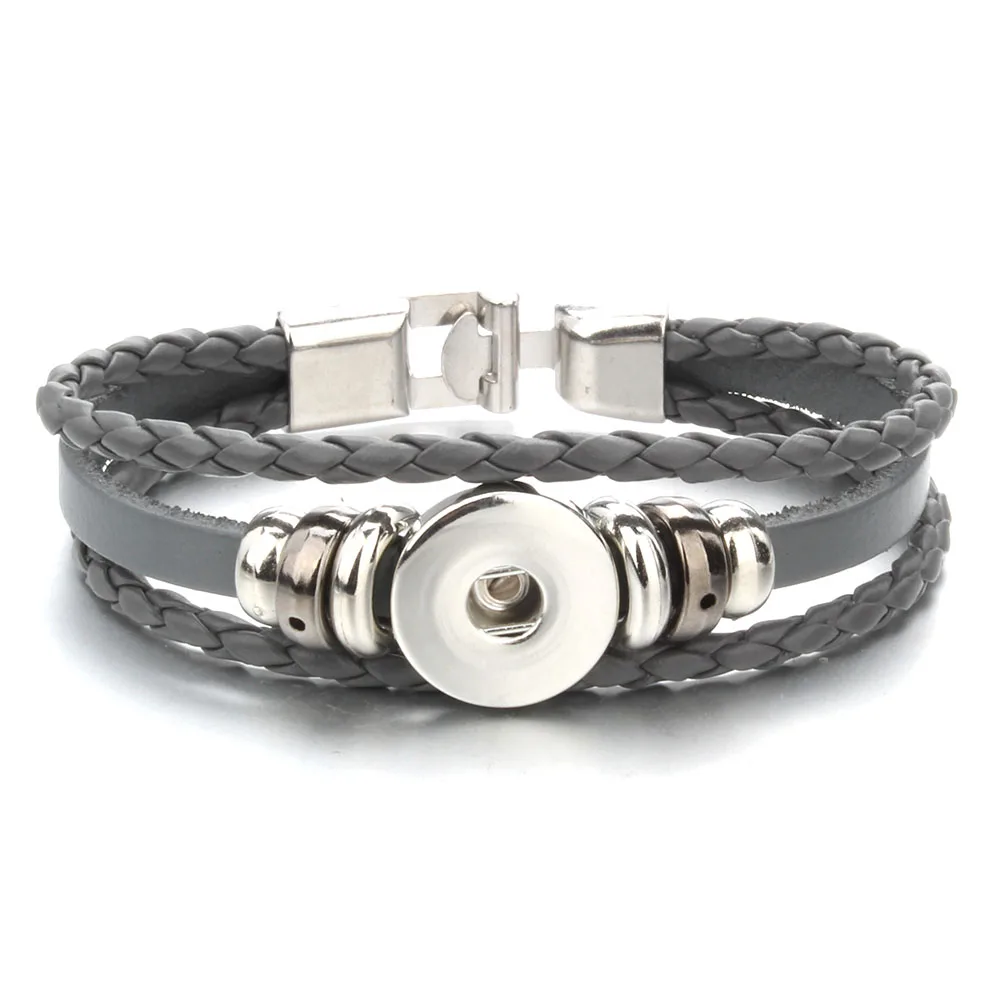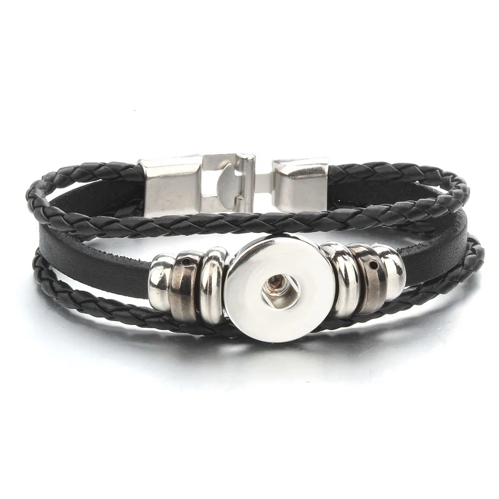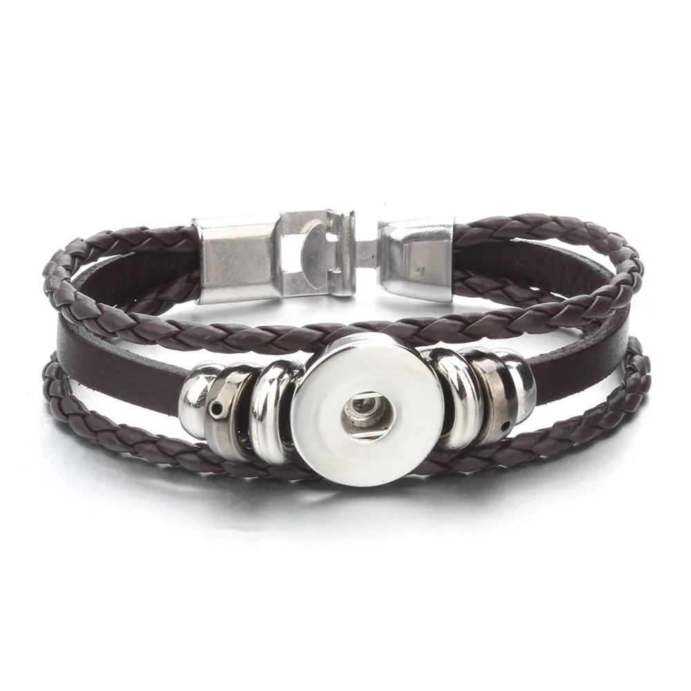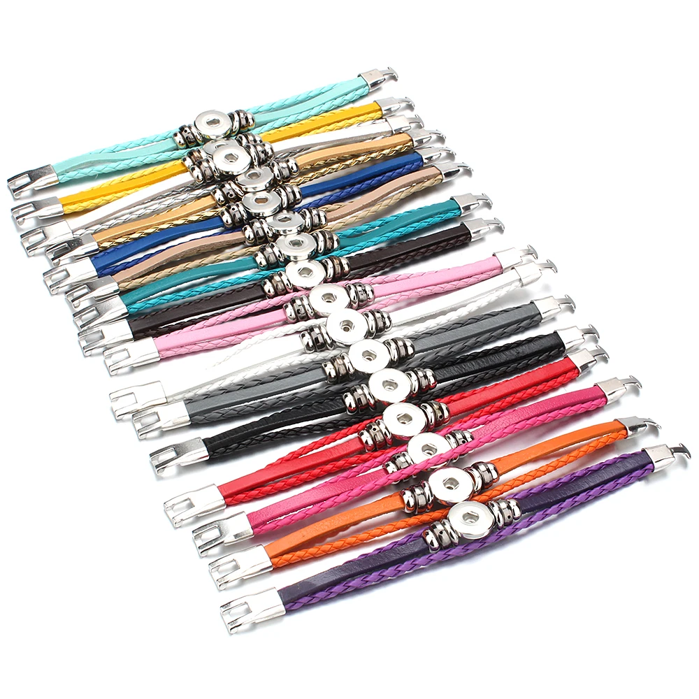 Горячая продажа оснастка Кнопка браслет оснастка кожаный браслет в стиле ретро из плетеной кожи, ручной работы браслет fit 18 мм кнопки ювелирные изделия