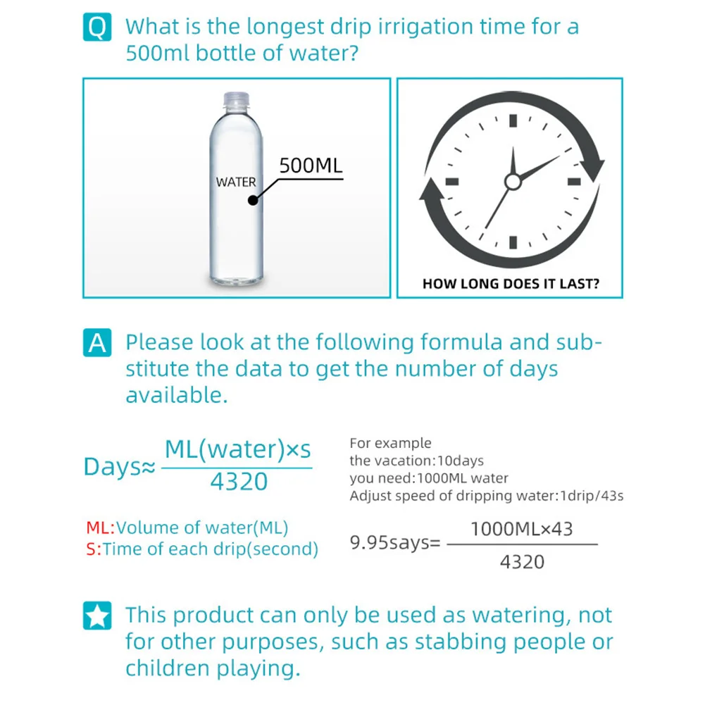 * 1. Легкий и удобный самополив шип капать воду в почву для орошения.