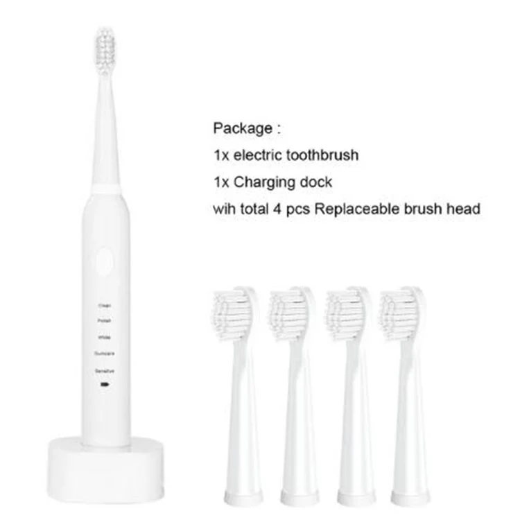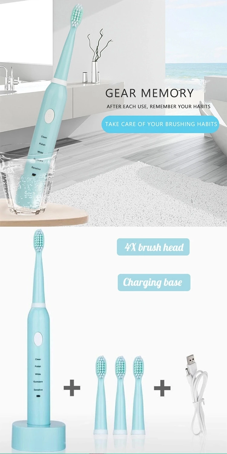 Звуковая электрическая зубная щетка для взрослых и детей, водонепроницаемая, ультразвуковая, автоматическая, 5 режимов, мощная USB Смарт-зубная щетка