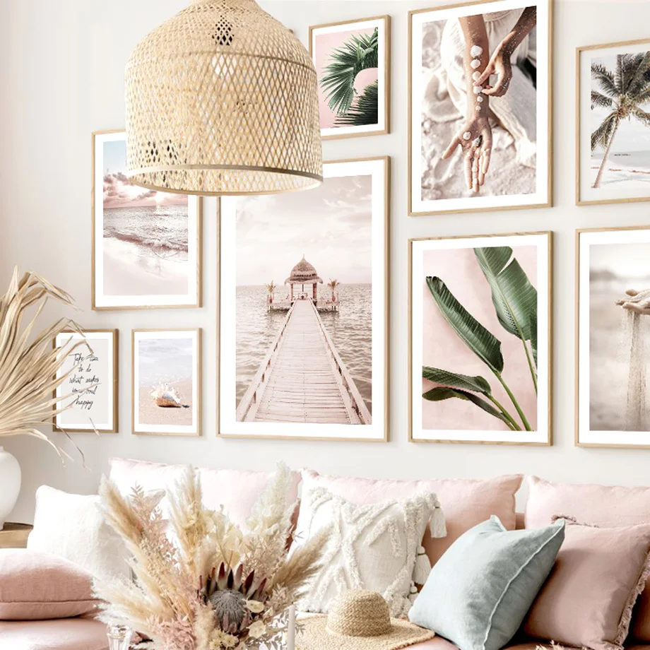 Пейзаж океана кокосовое дерево розовая пляжная настенная Картина на...