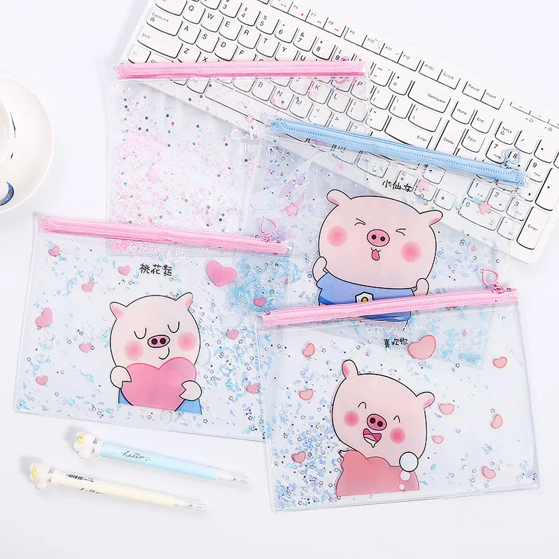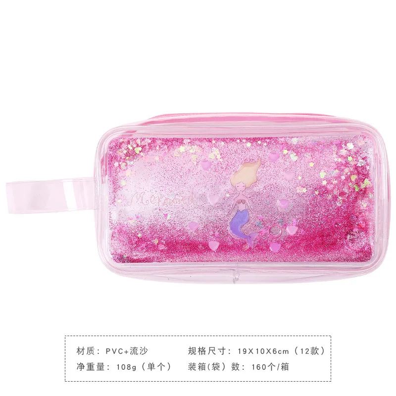 W G кавайный чехол для карандашей с сыпучим песком, Большая вместительная сумка для хранения, косметичка, прозрачный чехол для карандашей, канцелярские принадлежности