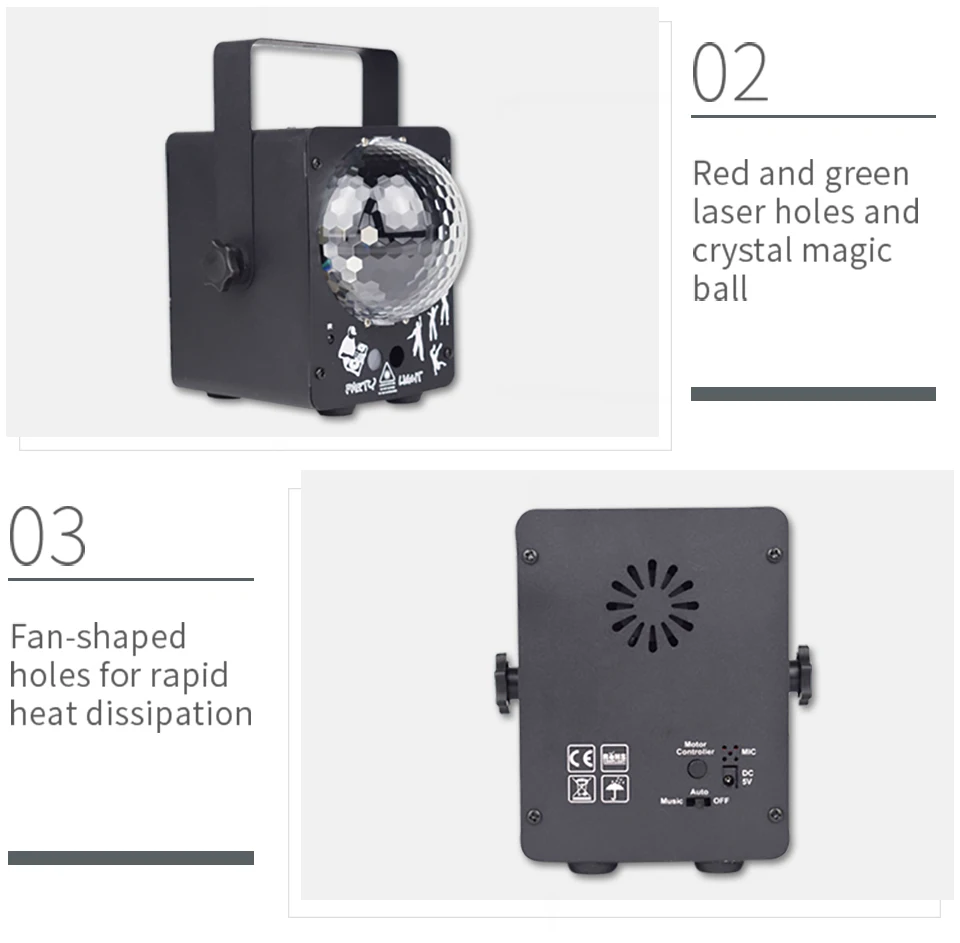 Лазерный проектор YSH, 60 узоров, светодиодный Rgb-проектор для дискотек, вечерние, диджеев, управление звуком, стробоскосветильник бара, дня рождения, лазерной показа