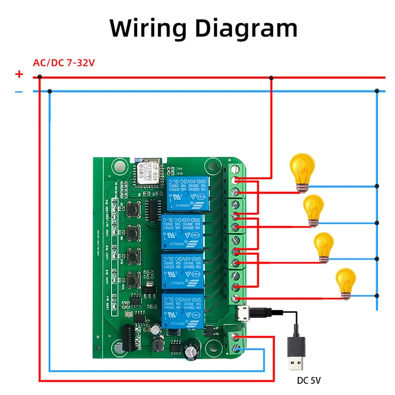 1. Удаленно дают импульсный сигнал для включения/выключения света, ламп и других бытовых приборов.2. Удаленно дают импульсный сигнал для включения/выключения двери гаража, доступа к двери3. Удаленно дают импульсный сигнал для управления двигателем постоянного тока, двигателем переменного тока для вперед и назад.
