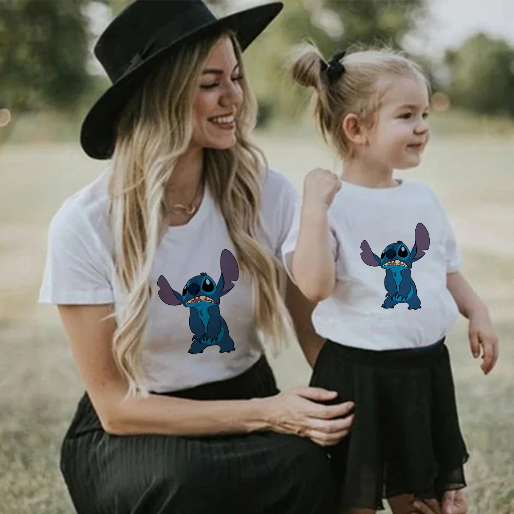 Футболки Disney, Детская футболка, футболка с принтом Лило и Ститч для девочек и мальчиков, повседневные белые топы, летняя одежда унисекс для взрослых, наряды для семейного образа