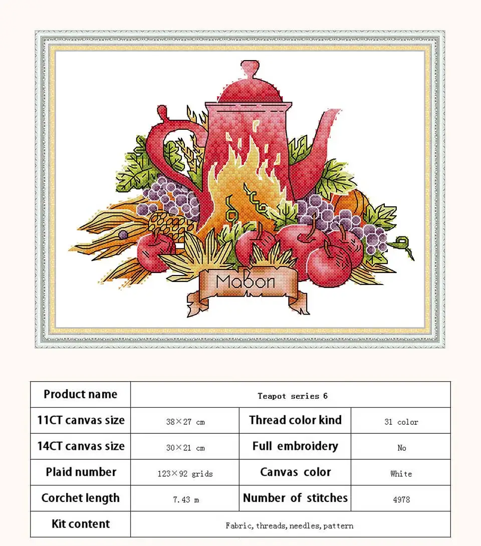 Набор чайников с рисунками, 11CT, 14CT, наборы для вышивки крестиком, китайская ручная работа, наборы для вышивки крестиком, рукоделие