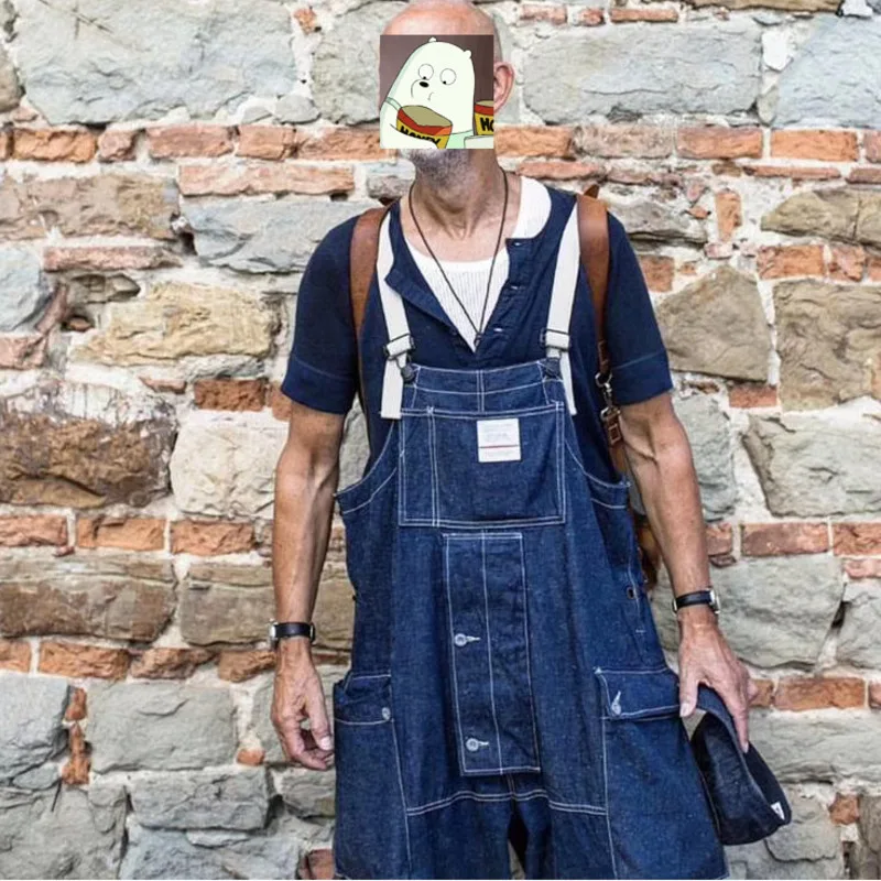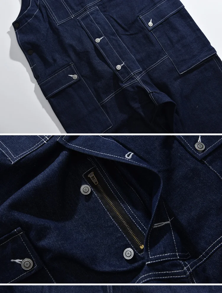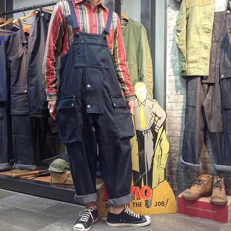 Комбинезон IEFB мужской джинсовый, спецодежда, свободный Cusual, большие размеры, темно-синий однотонный комбинезон на лямках, винтажная уличная одежда, джинсовые брюки