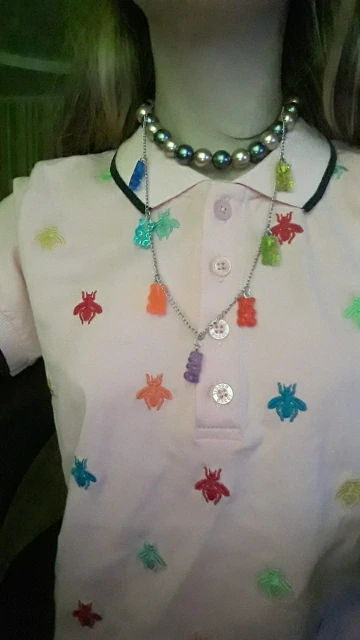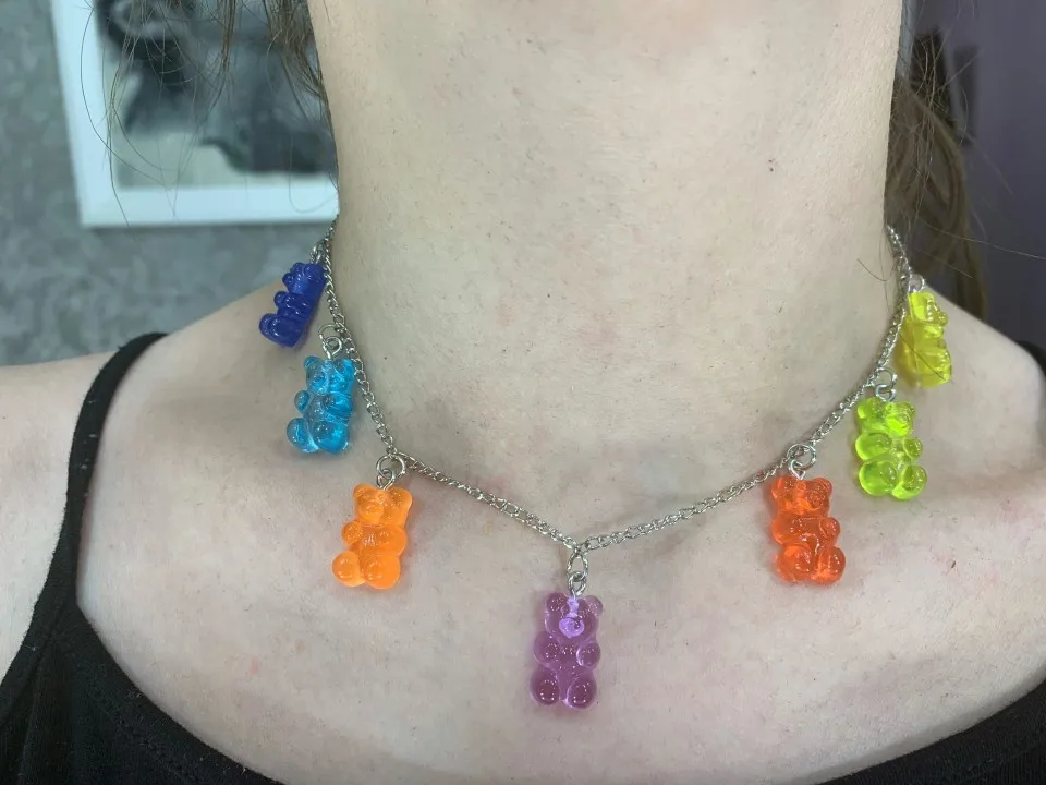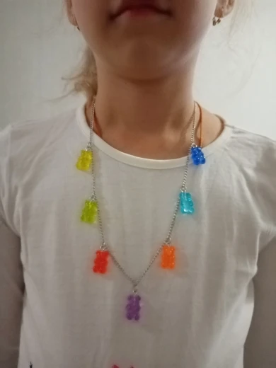 Полностью соответствует описанию и фото. Симпатичное украшение для девочек с желейными мишками :)