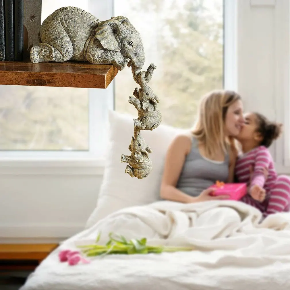 3 шт. Статуэтки из смолы с ручной росписью слон сиделка для матери и двух младенцев подвесной над краем полки