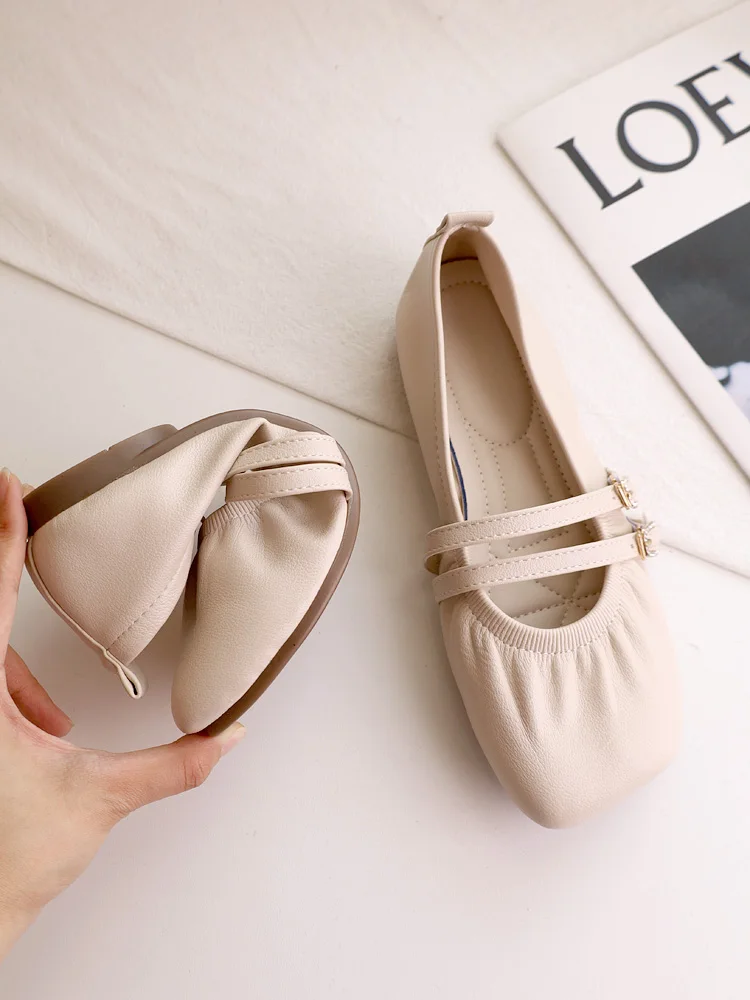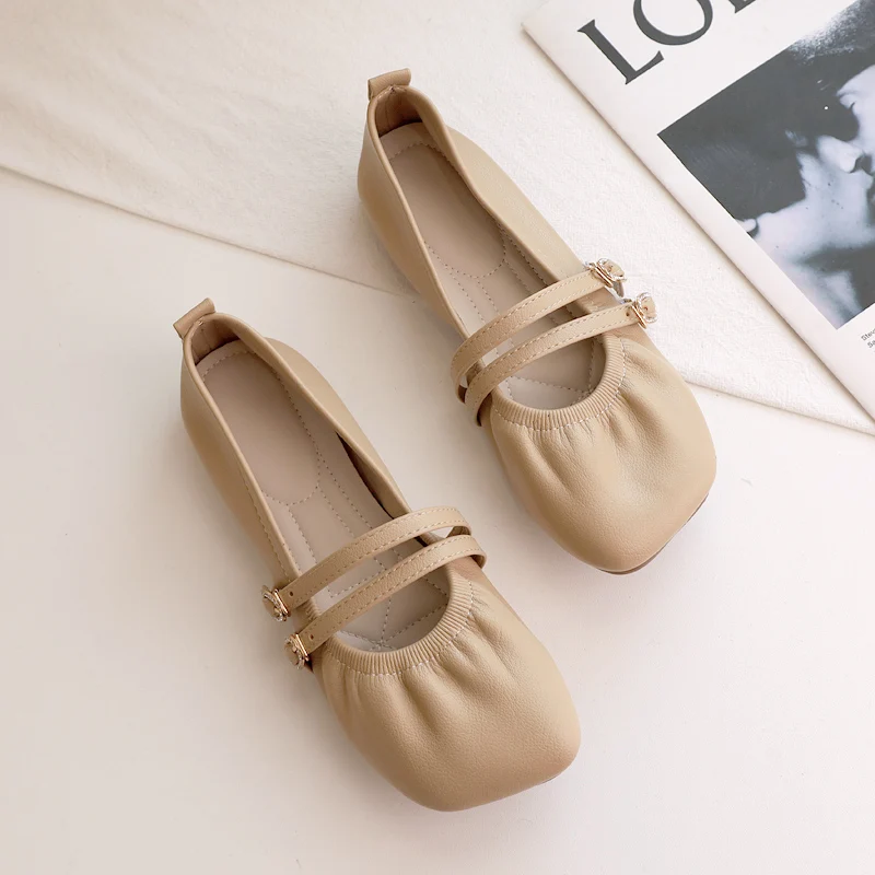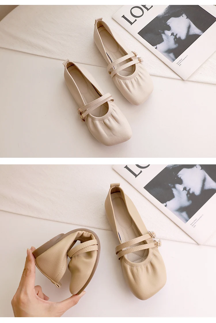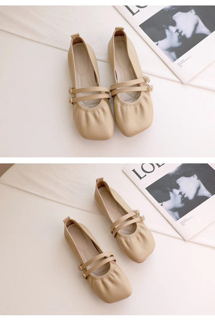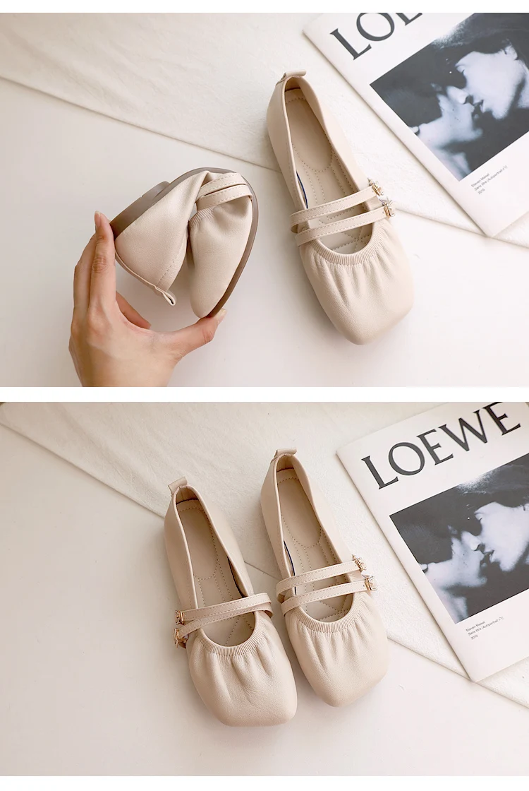 Кеды EOEODOIT женские кожаные, балетки, плоская подошва, двойная пряжка, квадратный носок, Повседневная Удобная обувь, весна