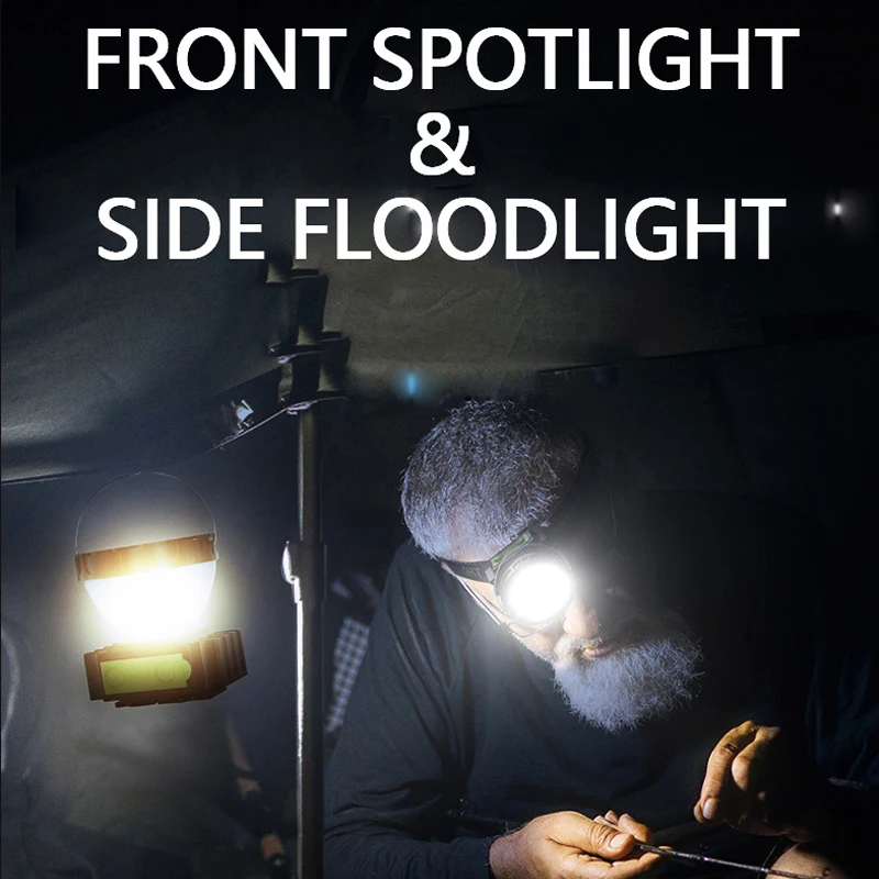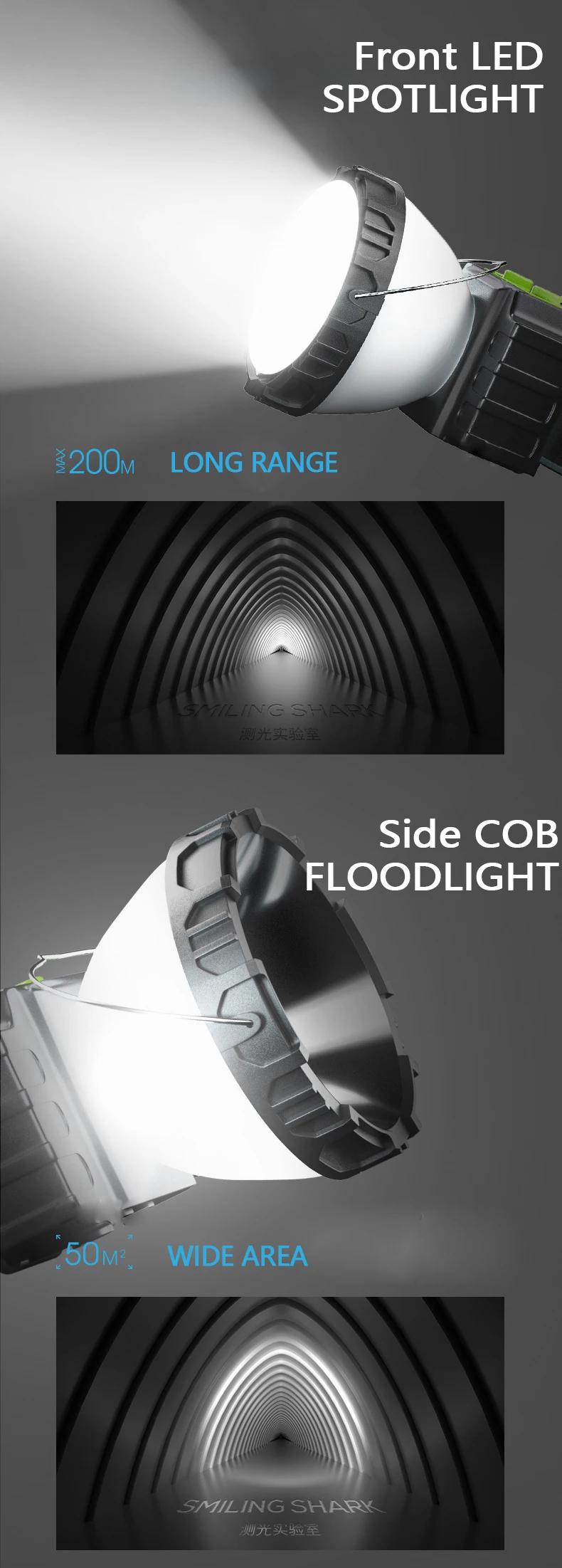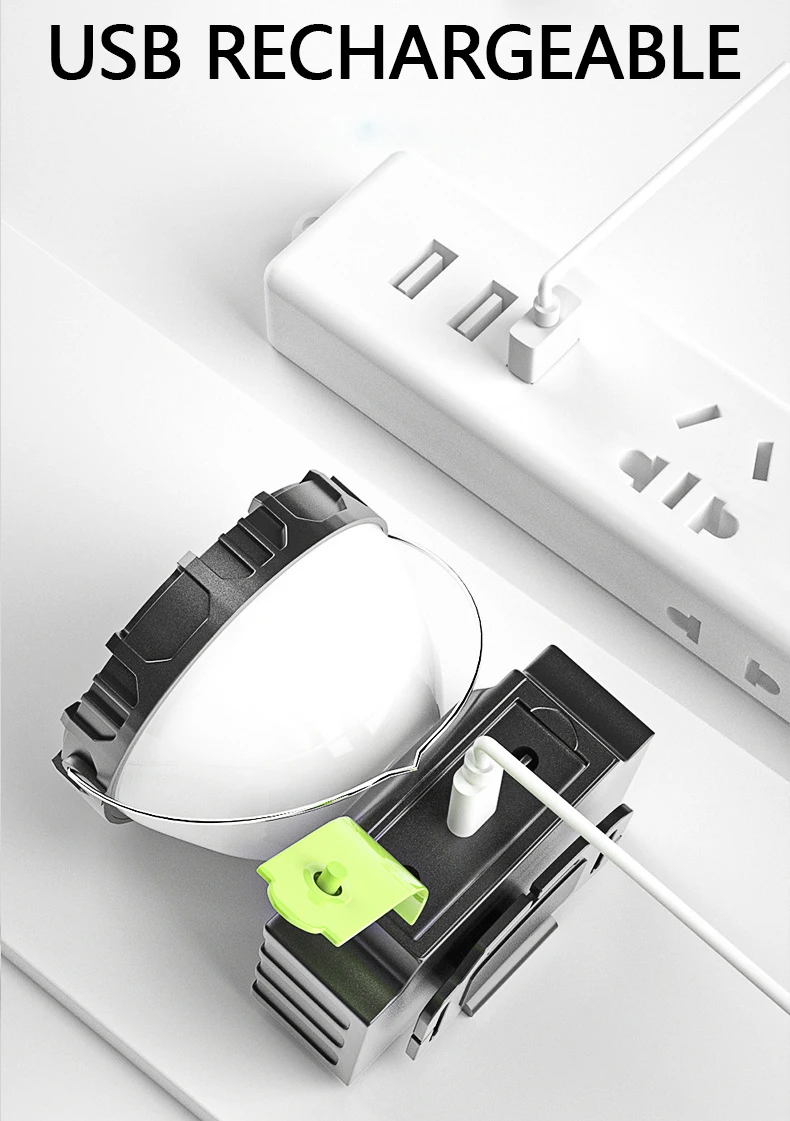 Перезаряжаемый через USB налобный фонарь, светодиодный + боковой прожектор, портативный крючок, уличный водонепроницаемый фонарь, встроенный аккумулятор, кемпинг, рыбалка