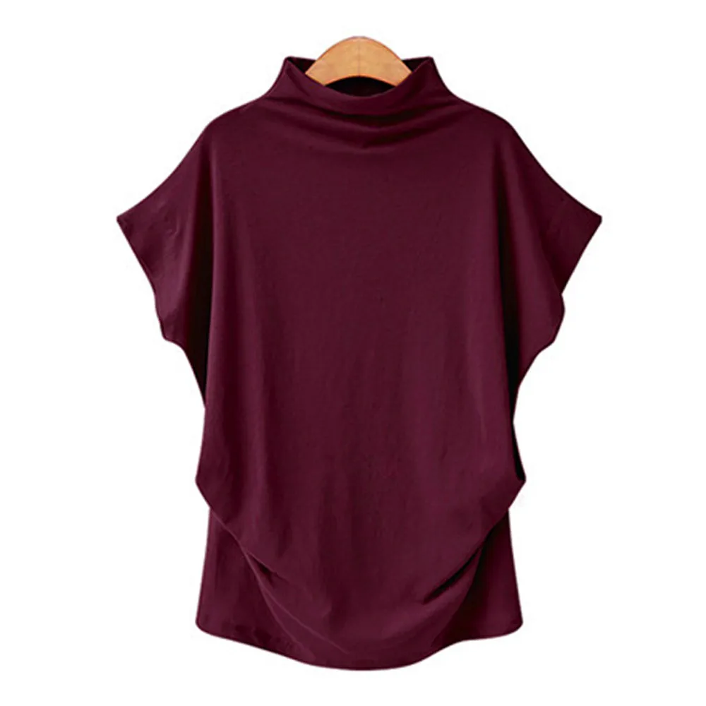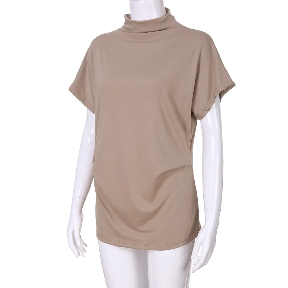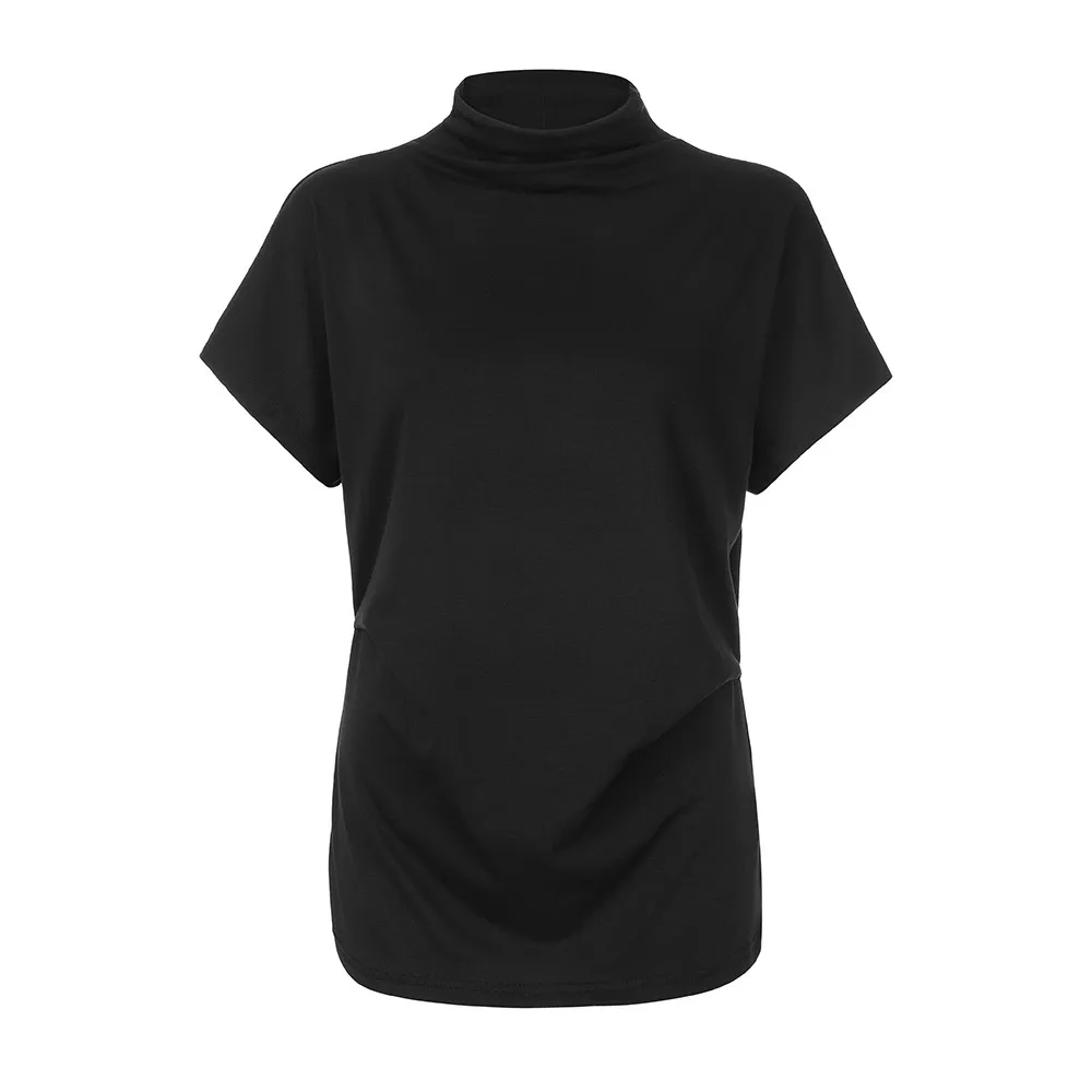 Женская водолазка с коротким рукавом, хлопковая однотонная Повседневная Блузка, топ, футболка размера плюс