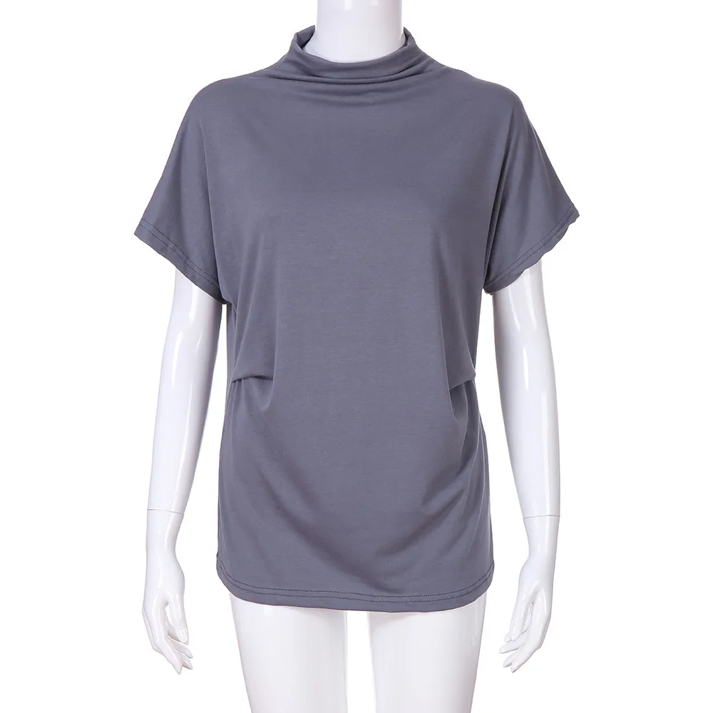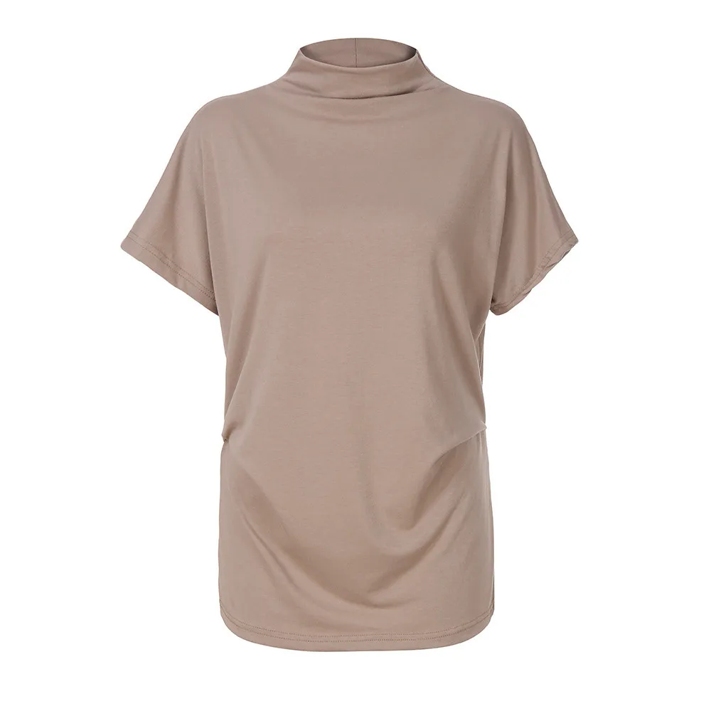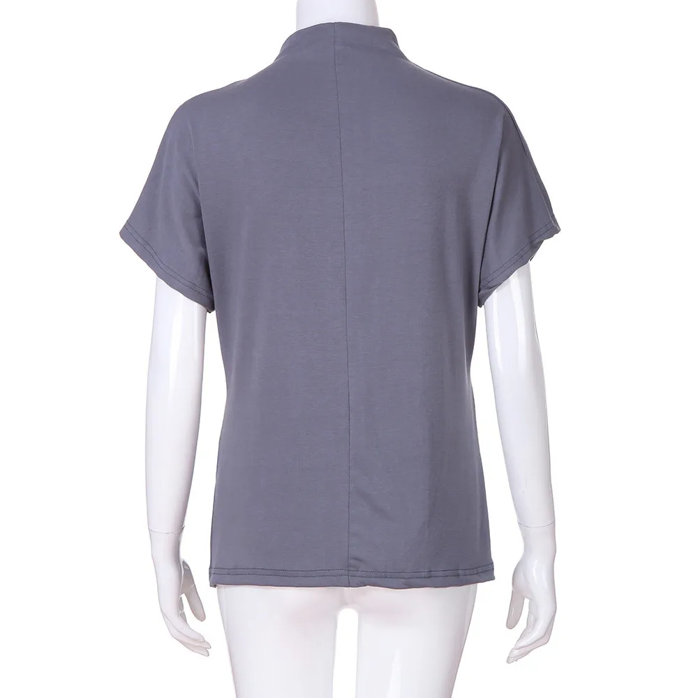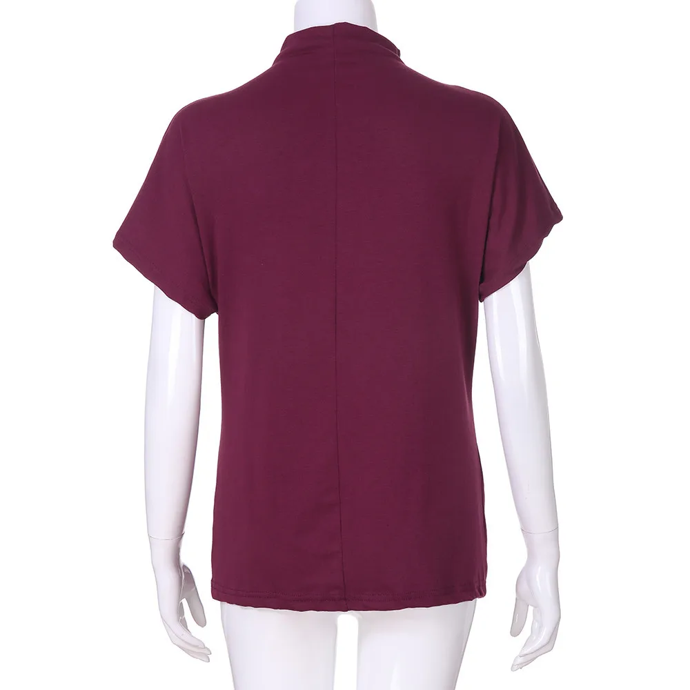 Женская водолазка с коротким рукавом, хлопковая однотонная Повседневная Блузка, топ, футболка размера плюс