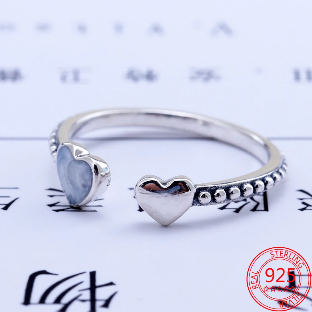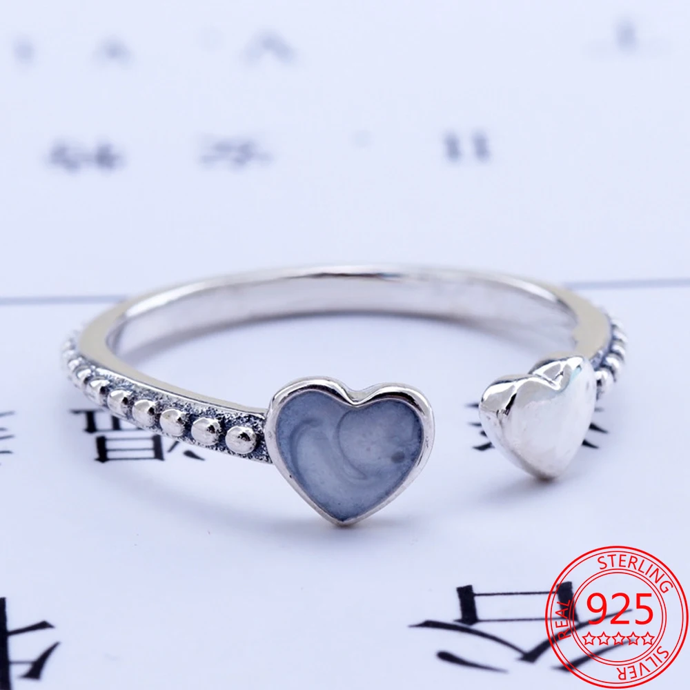 Сверкающее кольцо из серебра 925 пробы, Европейское экзотическое кольцо с драгоценным камнем и сердцем, Незамкнутое, полосатые кольца пробы, изысканные украшения
