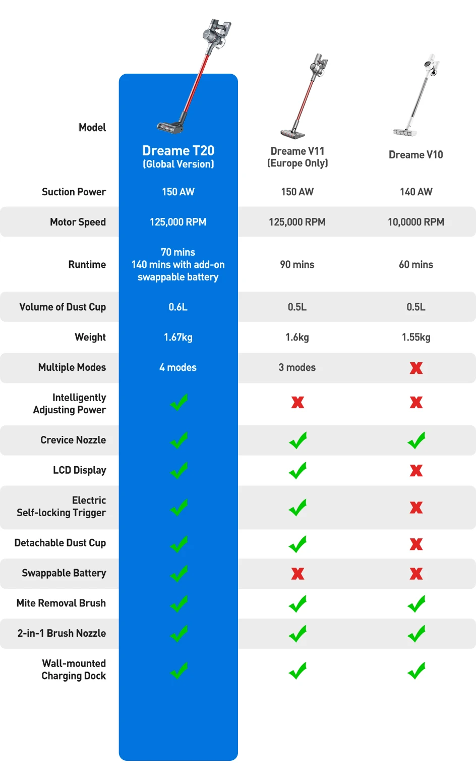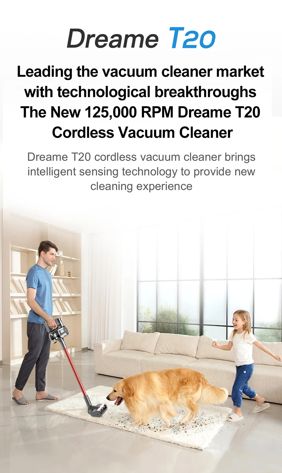 Беспроводной пылесос Dreame T20125000 об/мин DreameДвигатель|Все машина напольного типа смарт щетка| Полноцветный экран HD |Сверхдолгий Срок службы батареи 70 минут(140 минут с дополнительной заменяемой батареей)