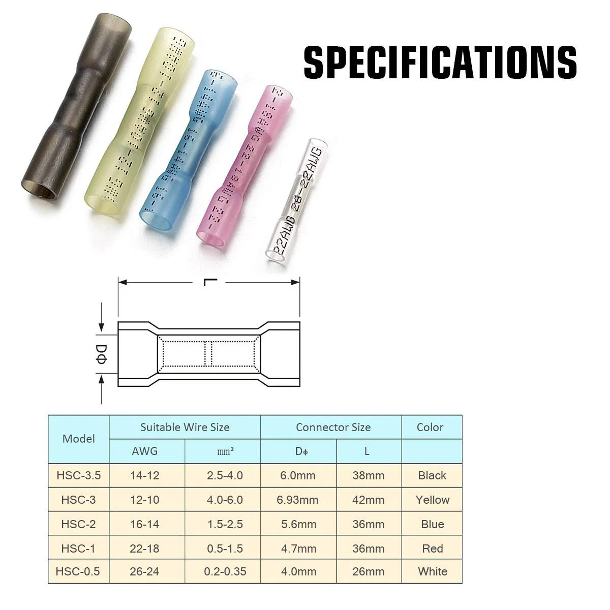 Комплект Термоусадочных стыковых соединителей, изолированные Водонепроницаемые электрические морские автомобильные клеммы обжима проводов, Сращивание