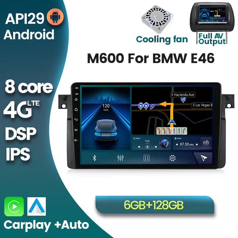 Автомобильный мультимедийный плеер 2DIN, Android 10, для Bmw E46, 318, 325, 320, 1998-2006, автомагнитола, IPS экран, 1280*720, HD-навигация, GPS, 4G LTE
