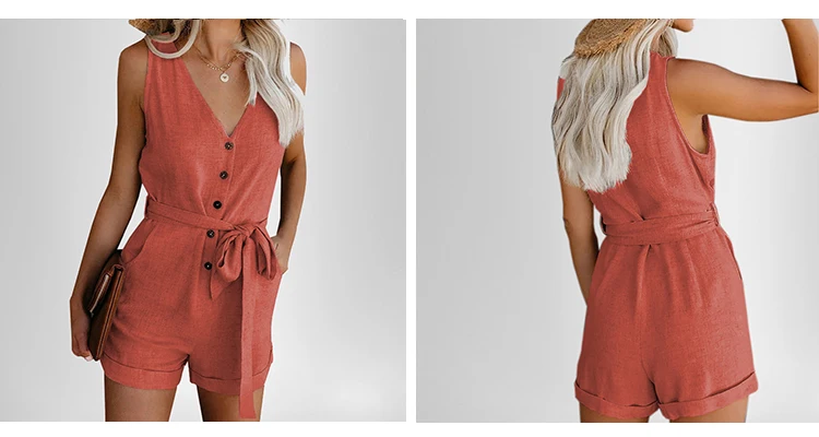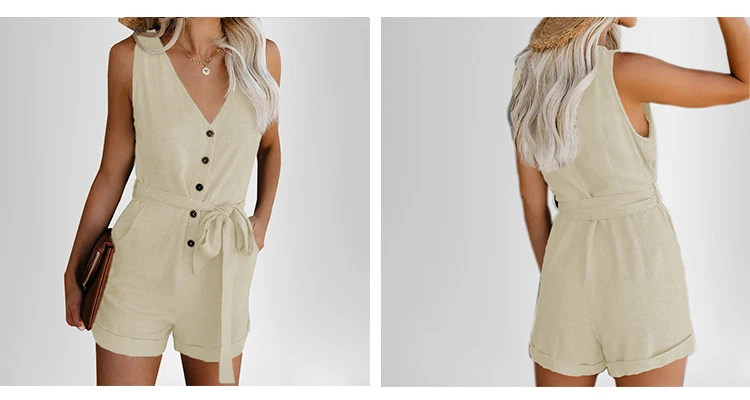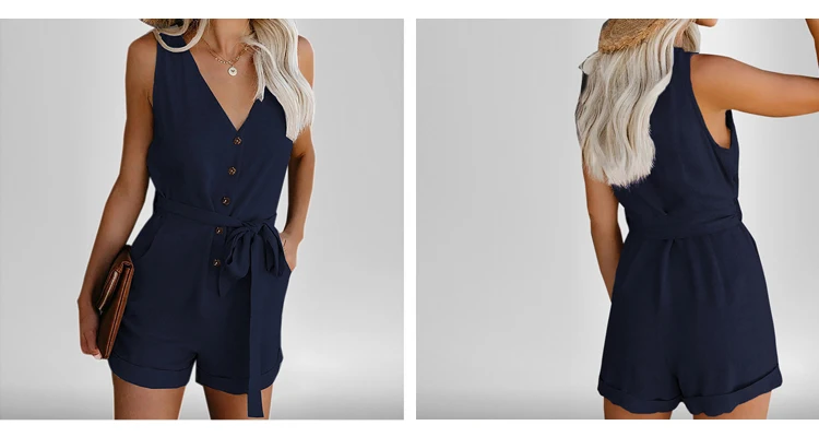Комбинезон Женская летняя одежда с открытыми плечами поясом Туника без рукавов комбинезон однотонная повседневная обувь V образным вырезом Короткие Комбинезоны 2021 размера плюс