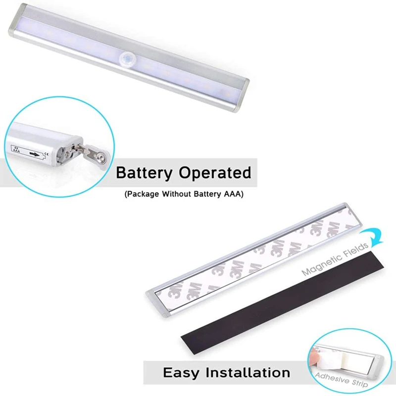 Простая установка: клейкая лента с магнитными полями легко крепится и отсоединяется от корпуса лампы. Не требуется никаких инструментов, винтов или гаек. 10 шт. яркий белый светодиодный, энергосберегающий и экологически чистый.