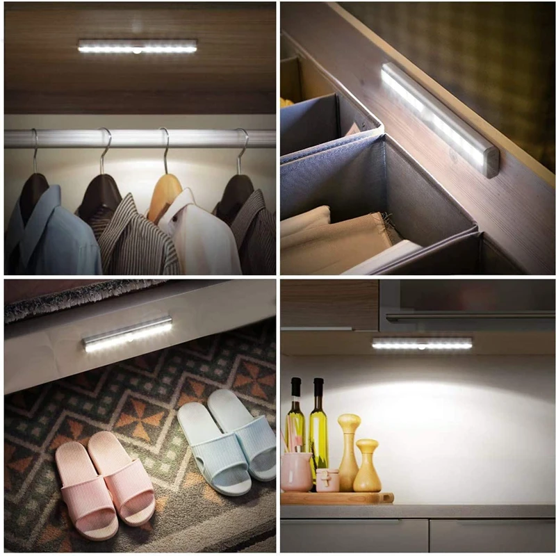 1x10 светодиодная подсветка под шкаф (белый или теплый белый)1 х 3 м клейкой ленты с магнитной полосой1 x Руководство пользователя