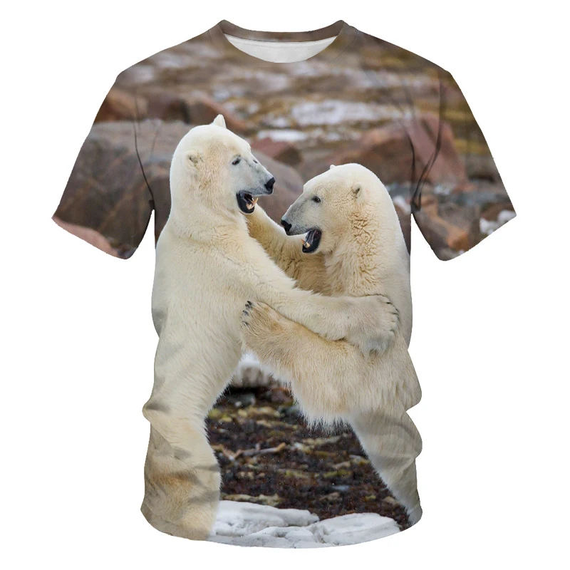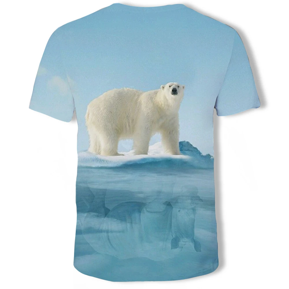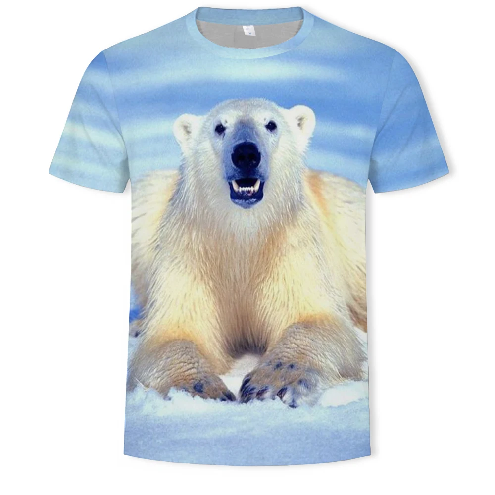 Летняя популярная новинка 2021, футболка с 3D-принтом милого белого медведя в стиле Харадзюку, модная мужская и женская футболка с круглым вырезом