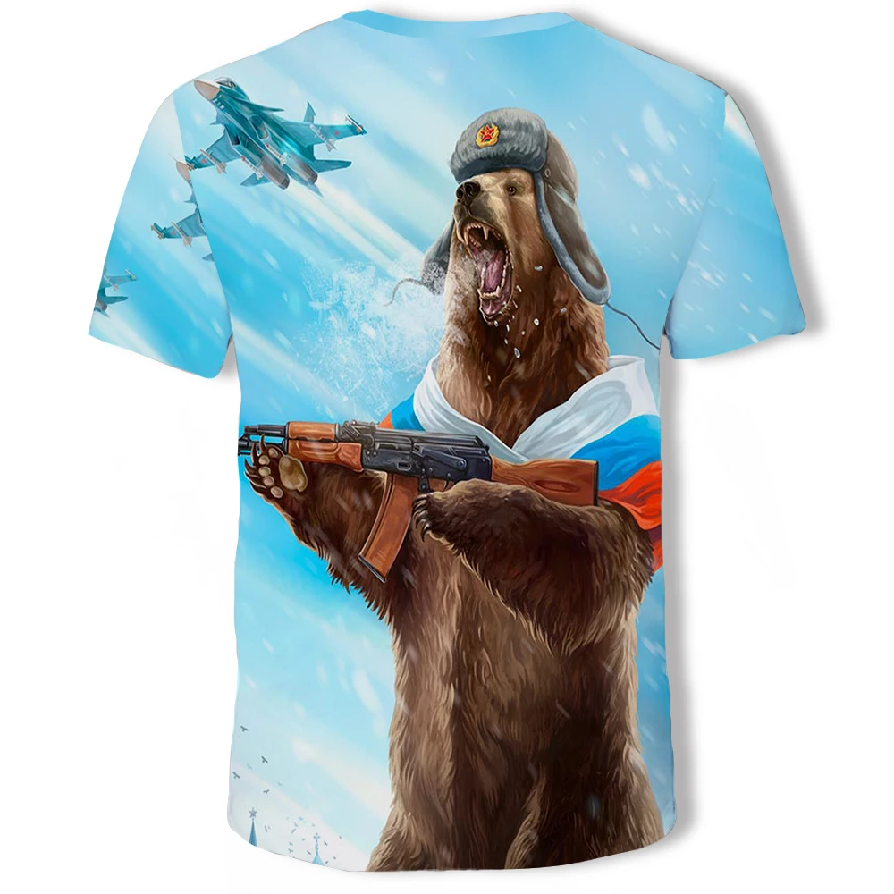 Новинка 2021, Мужская футболка 3D с изображением животного и медвед...