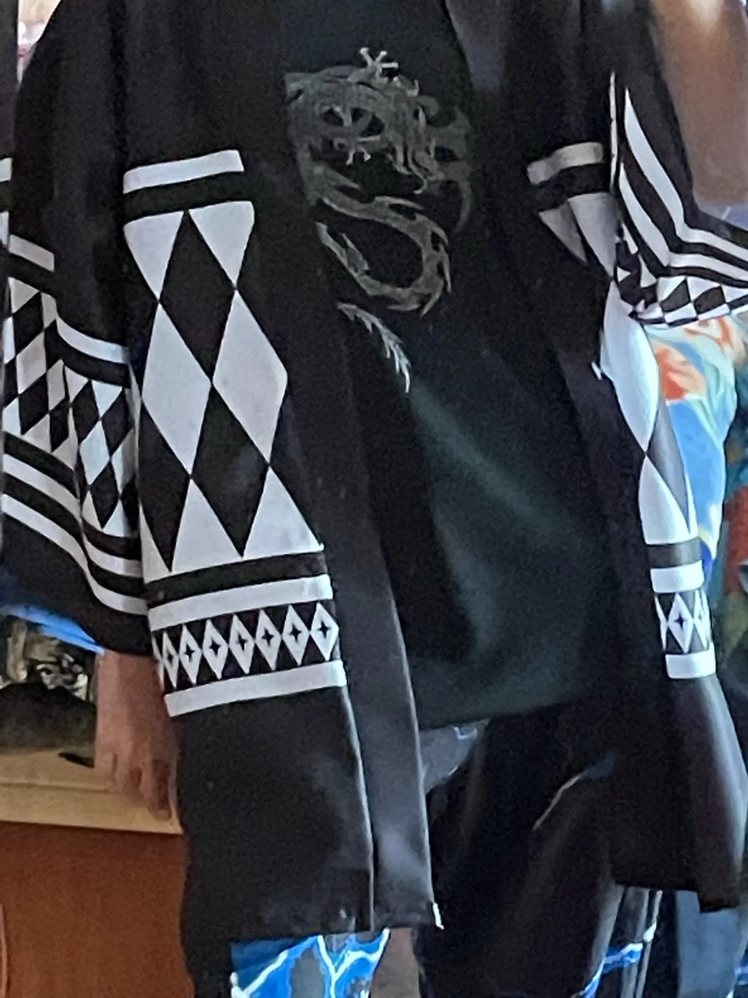 отличная вещь теперь буду страдать в шараге, но в хаори токийской свастики. есче лучше брать на размер больше, если не уверены в таблице. на мне xxl висит збс. (забавная фотка которую обрезал из видео, НО ТУТ ВИДНА ДЛИНА НА РОСТ 172.)