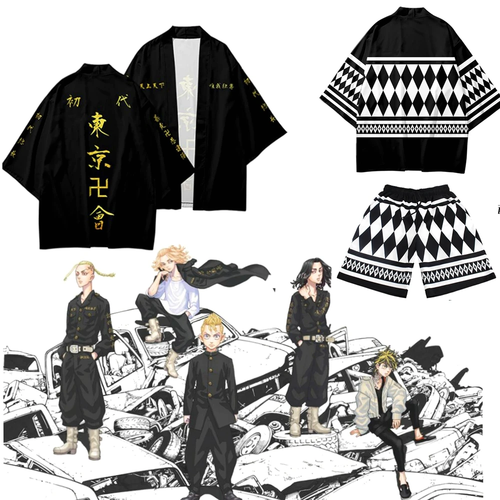 Футболка для косплея из аниме Токийские мстители, накидка из Мстителей, летнее кимоно-тройник хаори с коротким рукавом для мужчин, костюм Мстителей Токио