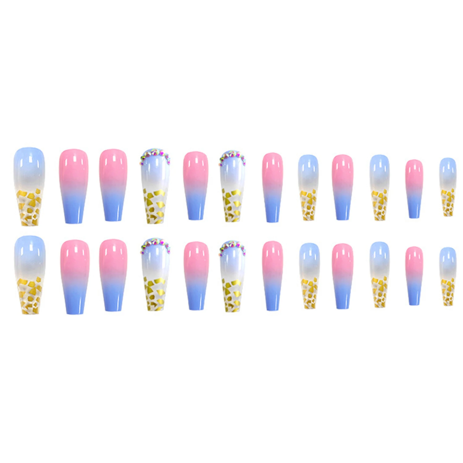 Накладные ногти длинная Радужная Золотая фольга с алмазным износом наклейки для ногтей Готовые наклейки для ногтей 24 шт. с клеем для ногтей аксессуары