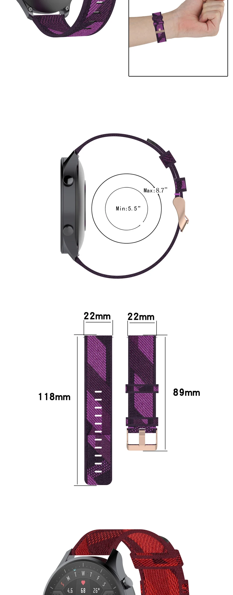 22 мм нейлоновый ремешок для Xiaomi Mi Color Sport Samrt, тканый браслет из парусины для часов Xiaomi, цветной ремешок, аксессуарыОписание:Особенности:Чувствует себя более комфортно, чем традиционныеПростой и стильный светильникТканая нейлоновая петля дышащая и не впитывает потПряжка из нержавеющей сталиСпортивный ремешок для XIAOMI MI Band colorСовместимость 22 мм:Цвет часов для Xiaomi-Улучшенные товары для спорта и фитнесаУпаковка включает в себя:1 * спортивный силиконовый наручный браслет (не часы)