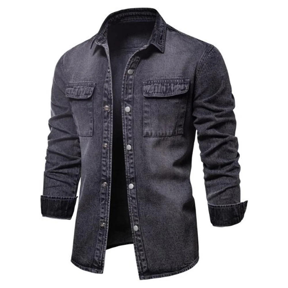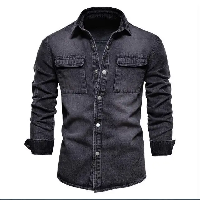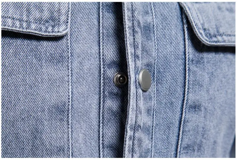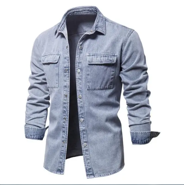 Куртка мужскаяМолодежная из хлопка, с отворотом, однобортная, с карманами, винтажная, приталенная, голубая, осень 2021