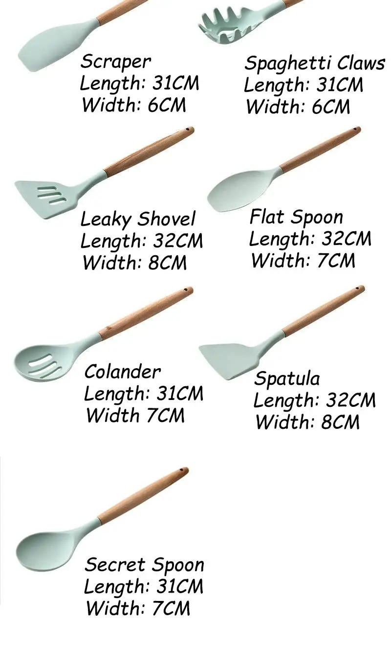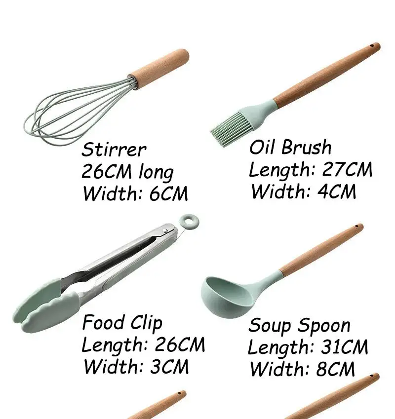 Зеленый силиконовая посуда кухонные приборы Набор инструментов деревянный многофункциональный ручка с антипригарным покрытием шпатель ковш яйцо венчики лопата для снега